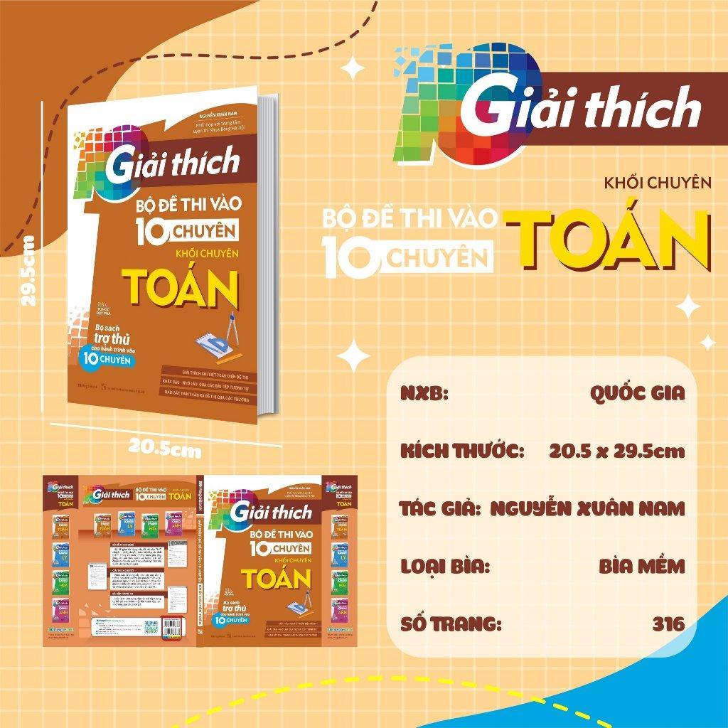 - Khổ sách siêu to Sách in khổ A4 siêu to, giúp Teen lớp 9 không bị “Mỏi mắt” “Buồn ngủ” khi lỡ Yêu thương cuốn sách mà cày đề ngày đêm. Với những ưu điểm vượt trội, cuốn sách Giải Thích Bộ Đề Thi Vào 10 Chuyên - Khối Chuyên Toán hứa hẹn sẽ trở thành người bạn đồng hành giúp các Teen lớp 9 ôn luyện và bứt phá về đích với số điểm mơ ước! Công ty phát hành Megabook Nhà sản xuất Đại Học Quốc Gia Hà Nội Kích thước 20.5 x 29.5 Tác giả Nguyễn Xuân Nam Loại bìa Bìa mềm Số trang 316 Năm xuất bản 2022
