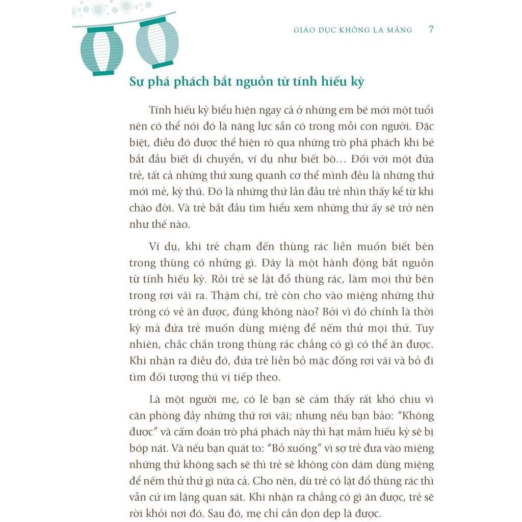 Trong cuốn sách Giáo dục không la mắng, tác giả - GS. Nobuyoshi khẳng định sự phá phách của trẻ là hành động sinh ra từ tính hiếu kỳ và chính tính hiếu kỳ là động lực cho tinh thần hành động tích cực của trẻ sau này. Khi là một người mẹ, có lẽ bạn sẽ cảm thấy rất khó chịu vì căn phòng đầy những thứ rơi vãi; nhưng nếu bạn bảo: “Không được” và cấm đoán trò phá phách của con trẻ thì hạt mầm hiếu kỳ cũng sẽ bị bóp nát.