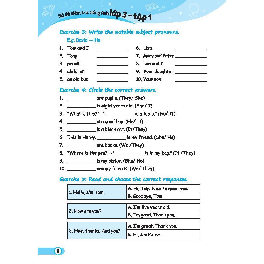 Nhằm giúp các em học sinh ôn tập và hệ thống hóa kiến thức đã học trong sách giáo khoa và cũng là tài liệu tham khảo hữu ích cho các thầy cô giáo trong quá trình giảng dạy môn Tiếng Anh, chúng tôi đã biên soạn cuốn sách Bộ đề kiểm tra Tiếng Anh lớp 3 theo chương trình sách giáo khoa thí điểm mới nhất của Bộ Giáo dục và Đào tạo.