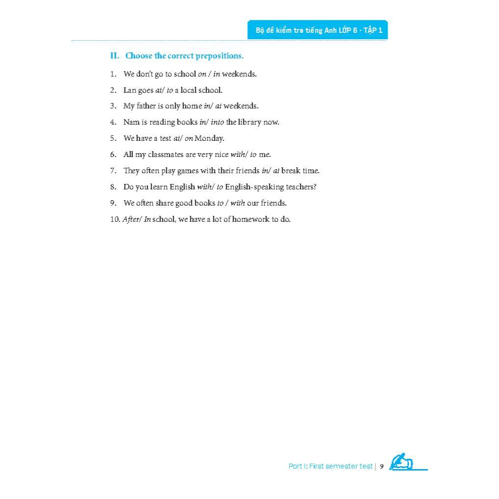 Nhằm giúp các em học sinh ôn tập và hệ thống hóa kiến thức đã học trong sách giáo khoa và cũng là tài liệu tham khảo hữu ích cho các thầy cô giáo trong quá trình giảng dạy môn Tiếng Anh, chúng tôi biên soạn bộ sách “Bộ đề kiểm tra Tiếng Anh lớp 6” theo chương trình SGK thí điểm mới nhất của Bộ Giáo dục và Đào tạo.