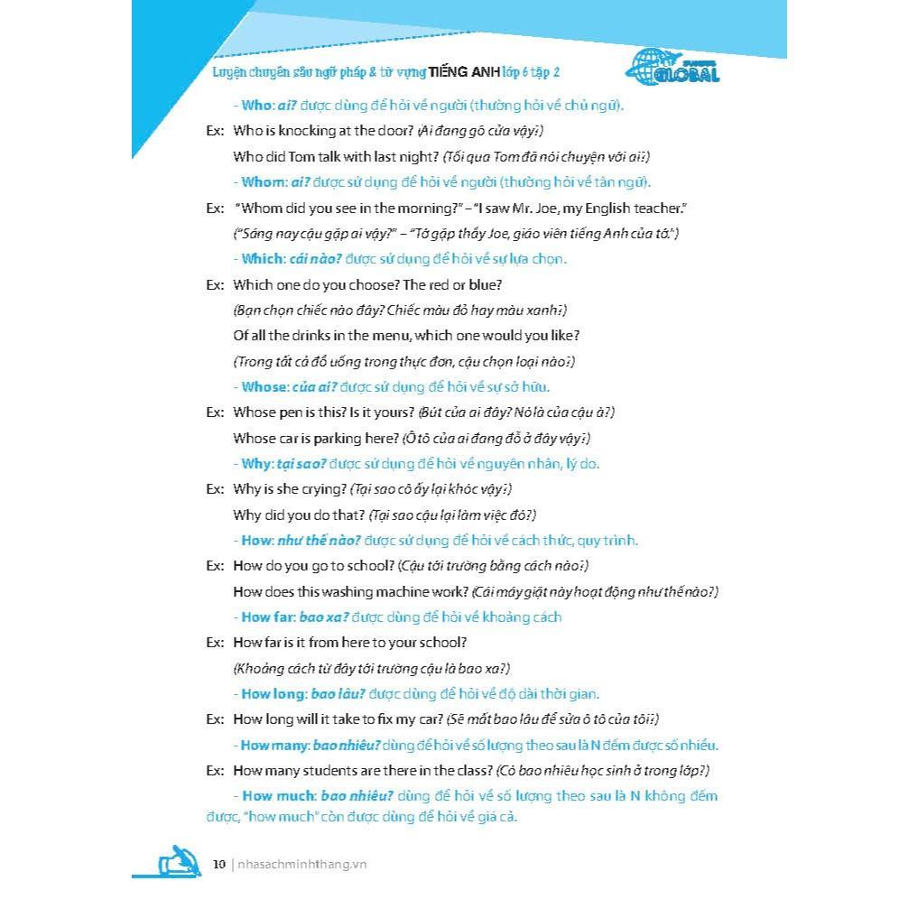 GLOBAL SUCCESS Luyện chuyên sâu ngữ pháp và từ vựng tiếng anh lớp 6 là một bộ sách tham khảo hữu ích dành cho học sinh lớp 6. Sách giúp học sinh ôn tập và củng cố kiến thức, rèn luyện ngữ pháp và từ vựng tiếng Anh một cách hiệu quả.