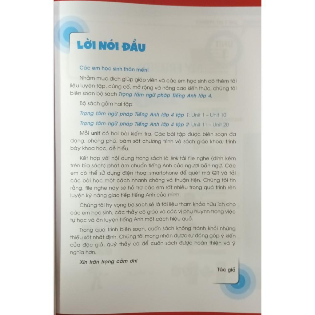 Nhằm mục đích giúp giáo viên và các em học sinh có thêm tài liệu luyện tập, củng cố, mở rộng và nâng cao kiến thức, chúng tôi biên soạn bộ sách Trọng tâm ngữ pháp Tiếng Anh lớp 4