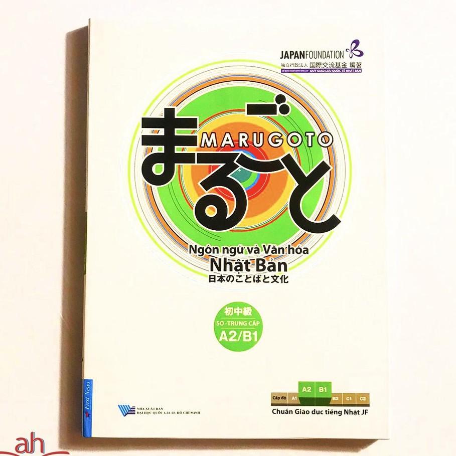 Giới thiệu chung về sách: Giáo trình Marugoto - Ngôn ngữ và Văn hóa Nhật Bản được triển khai dựa trên Chuẩn Giáo dục tiếng Nhật JF. Tựa đề Marugoto, có nghĩa là trọn vẹn, chứa đựng thông điệp mà ban biên soạn muốn gửi đến quý độc giả: sự kết hợp hài hòa hài hòa giữa ngôn ngữ và văn hóa. Giáo trình Marugoto sử dụng nhiều tranh ảnh, hình minh họa với màu sắc sống động giúp người học tiếp thu kiến thức qua nhiều giác quan, hiểu thêm về văn hóa Nhật Bản. Marugoto kết hợp vừa giảng dạy tiếng Nhật và nâng cao hiểu biết văn hóa Nhật Bản. Người học có thể học văn hóa Nhật Bản thông qua việc tiếp cận với nhiều chủ đề như: du lịch, ẩm thưc, lễ hội, truyện tranh. Marugoto tập trung vào các tình huống giao tiếp thực tế bằng tiếng Nhật. Tuy nhiên, giáo trình này không hướng đến mục tiêu gia tăng lượng kiến thức về các mẫu câu, ngữ pháp.. Người học lấy các “Can-do” làm mục tiêu, theo đó học kiến thức liên quan đến tiếng Nhật để ứng dụng trong hoàn cảnh thực tế (mỗi bài học sẽ có các “Can-do” - những mục tiêu cần đạt được trong ngữ cảnh bài học đưa ra).