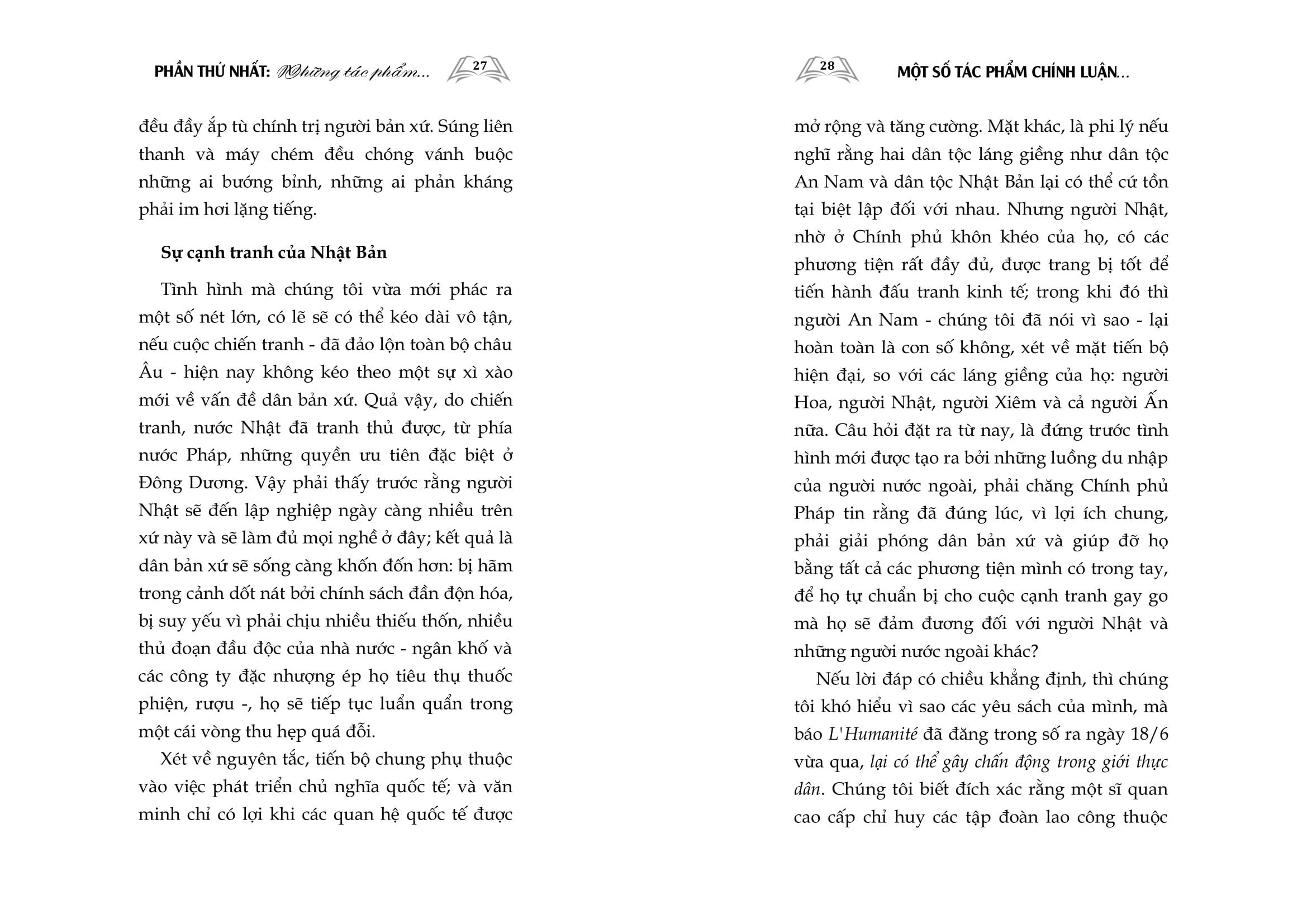 Cuốn sách là tập hợp một số tác phẩm chính luận trước 1969 của Chủ tịch Hồ Chí Minh, đặc biệt trong giai đoạn trước 1945. Đây là tư liệu then chốt để hiểu quá trình hình thành tư duy chính trị và chiến lược hành động của ông. Trong thời kỳ hoạt động tại Pháp, Anh, Liên Xô và Trung Quốc, Hồ Chí Minh đ.ã sử dụng chính luận như một công cụ để cất tiếng, xây dựng hình ảnh, tập hợp lực lượng trên các diễn ngôn quốc tế, với nội dung về chủ nghĩa đế quốc, quyền dân tộc và tình cảnh các nước thuộc địa. Những tác phẩm này thể hiện tư duy phân tích sắc sảo, hệ thống lập luận chặt chẽ, khả năng điều chỉnh giọng điệu và thông điệp tùy theo đối tượng tiếp nhận, và trên hết là nghệ thuật viết văn chính luận xuất sắc của Hồ Chí Minh.