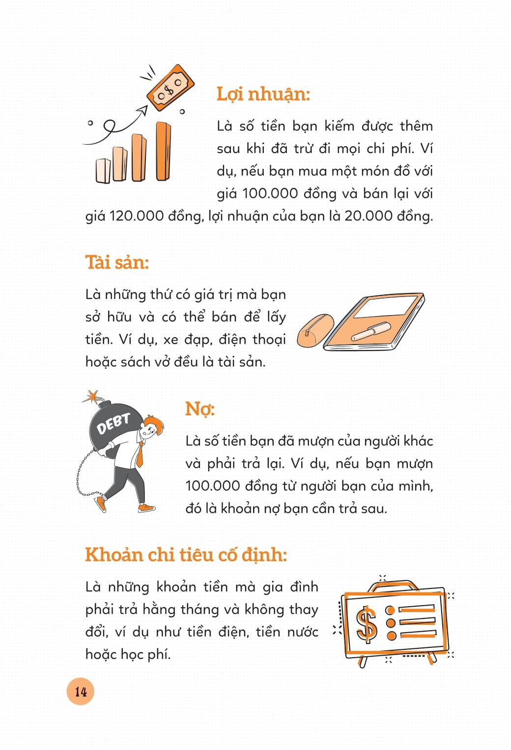 - thu nhập – chi tiêu – những cái “bẫy” tiêu dùng. chương 2: ngân sách chi tiêu: người bạn đồng hành đáng tin cậy từ khái niệm ngân sách đến cách lên kế hoạch và bí quyết tiết kiệm tiền tiêu vặt, mọi thứ được trình bày sinh động như một chuyến phiêu lưu nhỏ. chương 3: chi tiêu thông minh – tránh xa cạm bẫy các em sẽ học cách trở thành “khách hàng thông thái”: