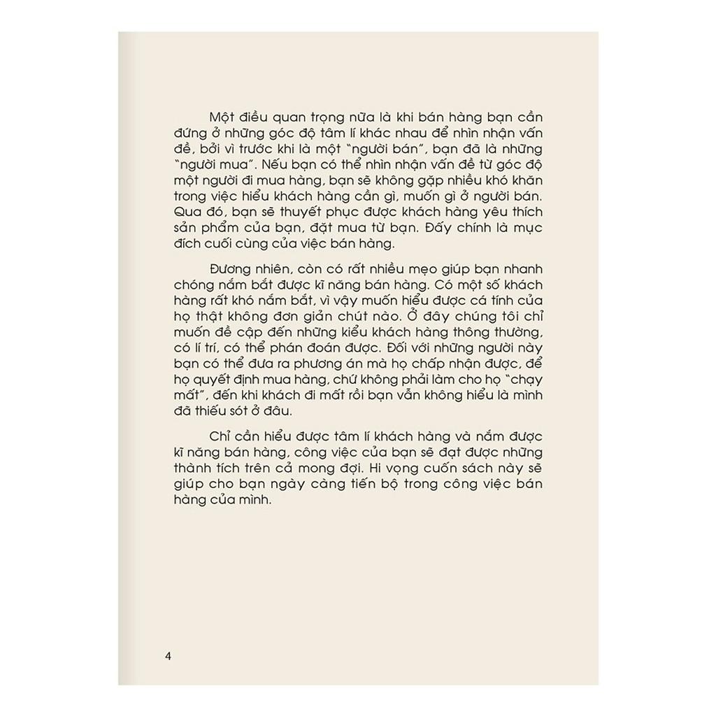 Cuốn sách này giới thiệu 10 kiểu khách hàng điển hình, được chia thành 90 ví dụ khác nhau nhằm giúp những người bán hàng như bạn có thể nhanh chóng chốt đơn hàng với khách. Đôi khi khách hàng thực sự có nhu cầu muốn mua , nhưng do người bán không hiểu được nhu cầu của khách nên đơn hàng đã “ dâng tận miệng “ cuối cùng lại để cho người khác cướp mất. Cuốn sách này sẽ giúp bạn biệt cách làm sao để có thể bán hàng một cách khéo léo và linh hoạt nhất.