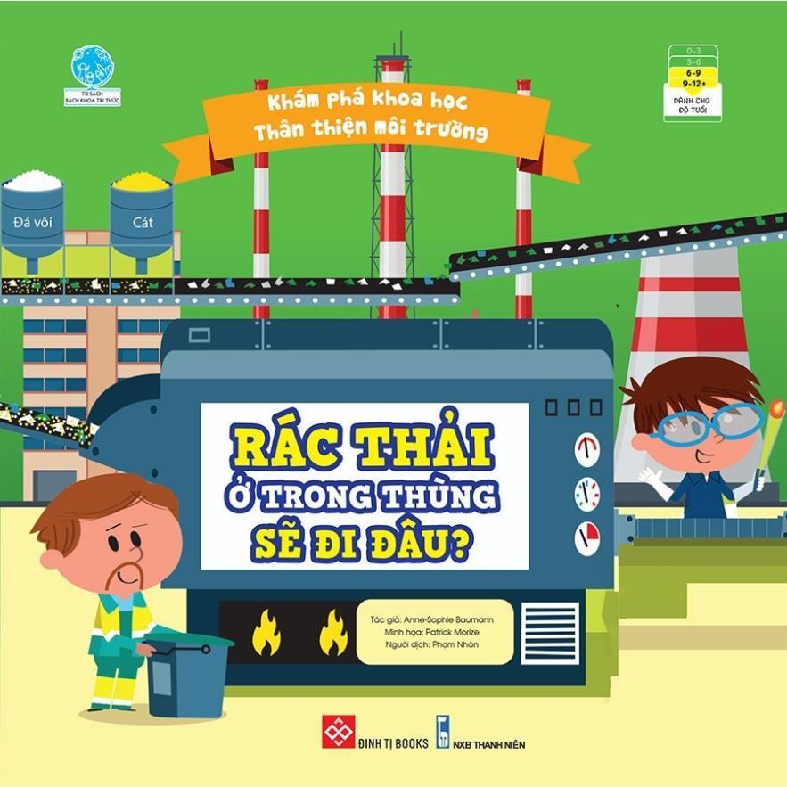 Cuốn sách Rác thải ở trong thùng sẽ đi đâu? sẽ giúp độc giả nhí giải đáp mọi thắc mắc từ việc thu thập cho tới việc tái chế rác thải thành những món đồ mới.