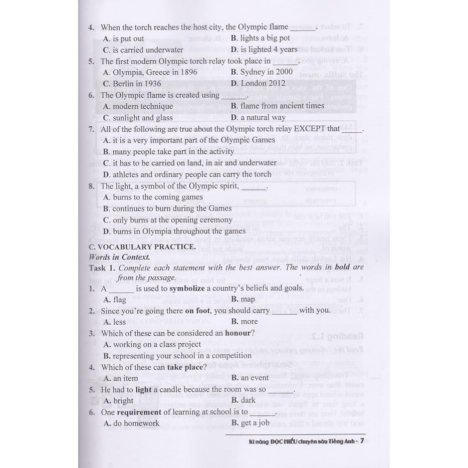 Phần B: Reading skills (kĩ năng đọc hiểu) trình bày lần lượt các kĩ năng đọc hiểu, trong đó có các kĩ năng đọc cơ bản được rèn luyện nhiều