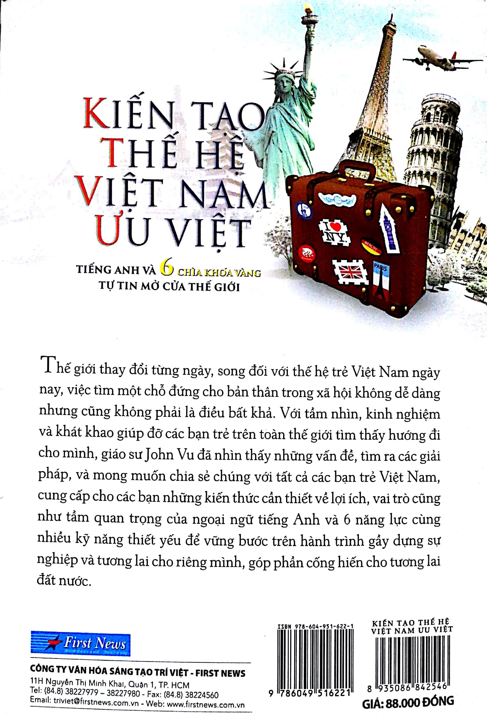 Kiến tạo thế hệ Việt Nam ưu Việt là cuốn sách trong bộ sách “Chắp cánh cho tuổi trẻ Việt Nam” của giáo sư John Vũ. Với tầm nhìn, kinh nghiệm và tâm huyết khát khao giúp đỡ các bạn trẻ trên toàn thế giới tìm thấy hướng đi cho mình, giáo sư John Vu đã nhìn thấy những vấn đề, tìm ra các giải pháp, và mong muốn chia sẻ chúng với tất cả những ai đang cần. Những bài viết tuyển chọn trong cuốn sách này sẽ phù hợp với các bạn trẻ Việt Nam, cung cấp cho các bạn những kiến thức cần thiết để vững bước trên hành trình gầy dựng sự nghiệp cho riêng mình.