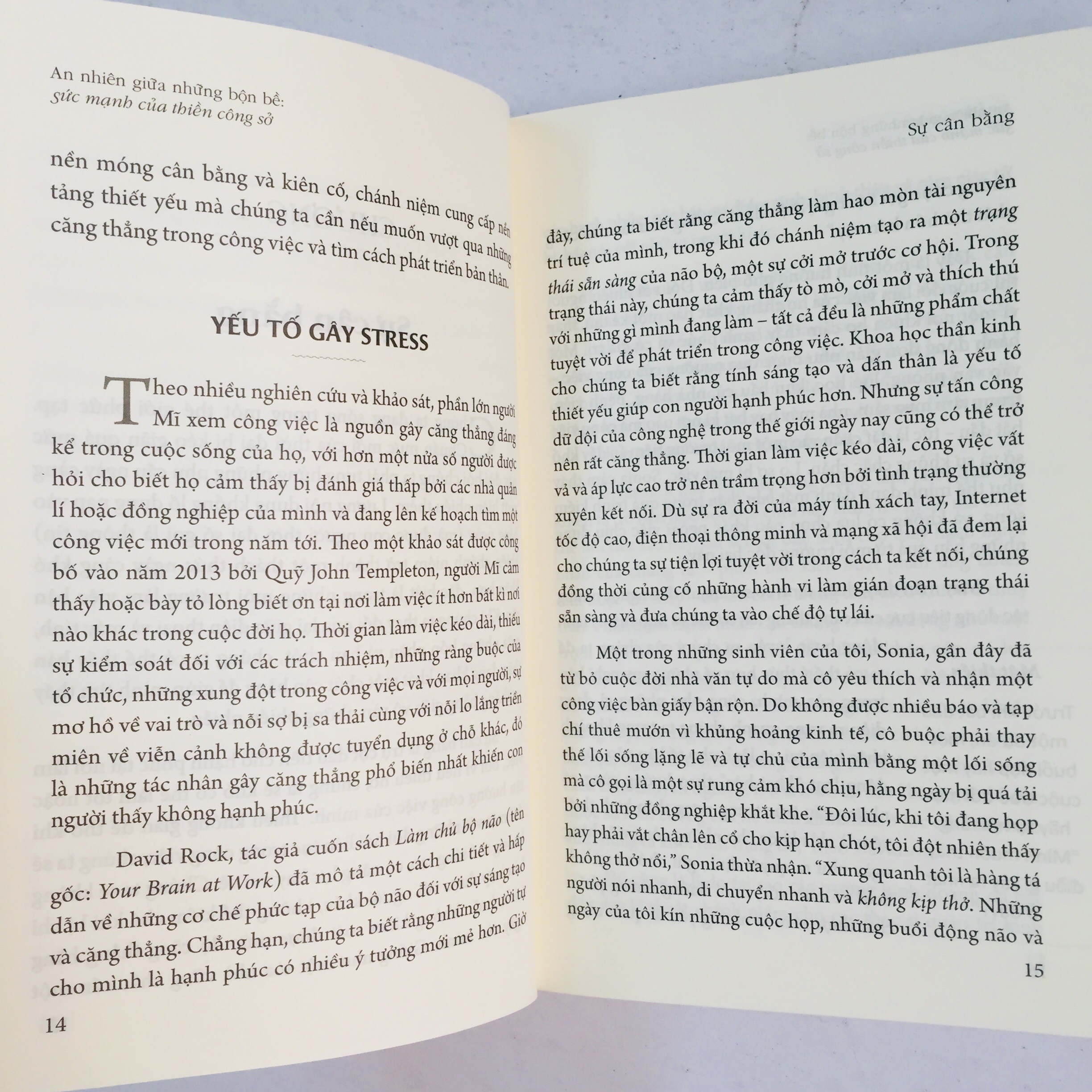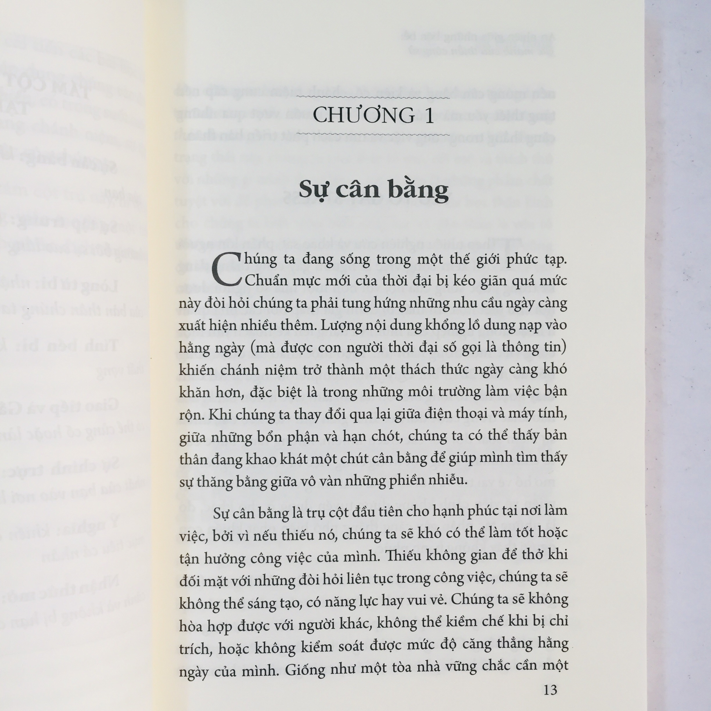 Cuốn sách này sẽ giúp bạn làm được điều đó. Nó hướng dẫn bạn cách nuôi dưỡng chánh niệm, lòng từ bi và khả năng nhận thức, rồi gắn kết những điều đó với không gian làm việc của bản thân. Nó cho ta biết cách cam kết mà không bị choáng ngợp; cách duy trì sự cạnh tranh mà không tỏ ra tàn nhẫn; cách quản lí thời gian và cảm xúc để đối phó với căng thẳng và bực bội.