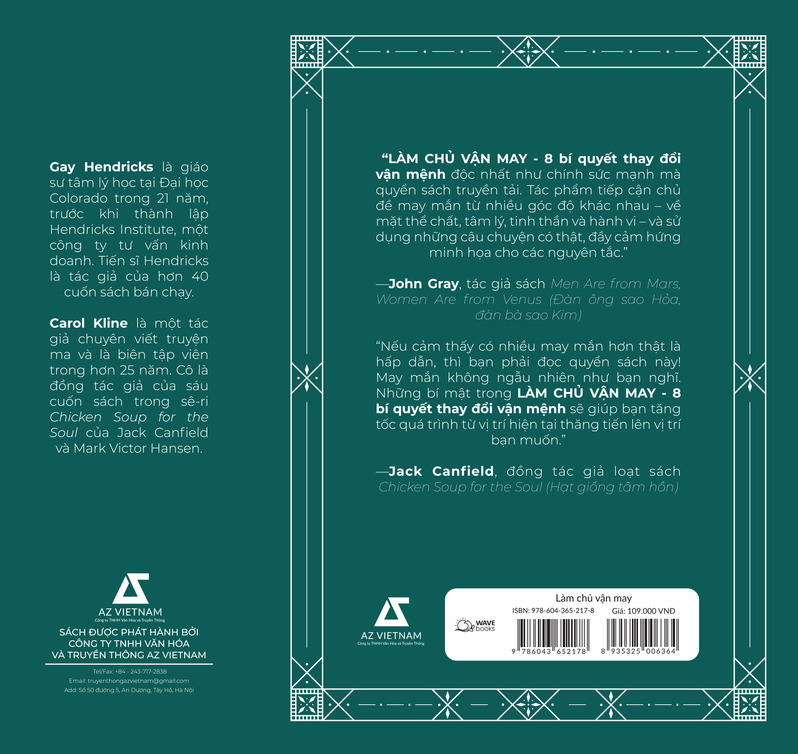 Cuốn sách này hàm chứa những câu chuyện thú vị về may mắn, với cách truyền tải độc nhất, cách tiếp cận chủ đề May Mắn từ nhiều góc độc khác nhau - về mặt thể chất, tâm lý, tinh thần và hành vi, sử dụng những câu chuyện có thật để minh họa sinh động cho các nguyên tắc. Sách được viết bởi Giáo Sư Tâm Lý Học Gay Hendricks và Carol Kline - họ đã có kinh nghiệm thực tiễn từng giúp hàng ngàn người trên khắp thế giới vạch ra chiến lược thành công trong mọi tình huống.