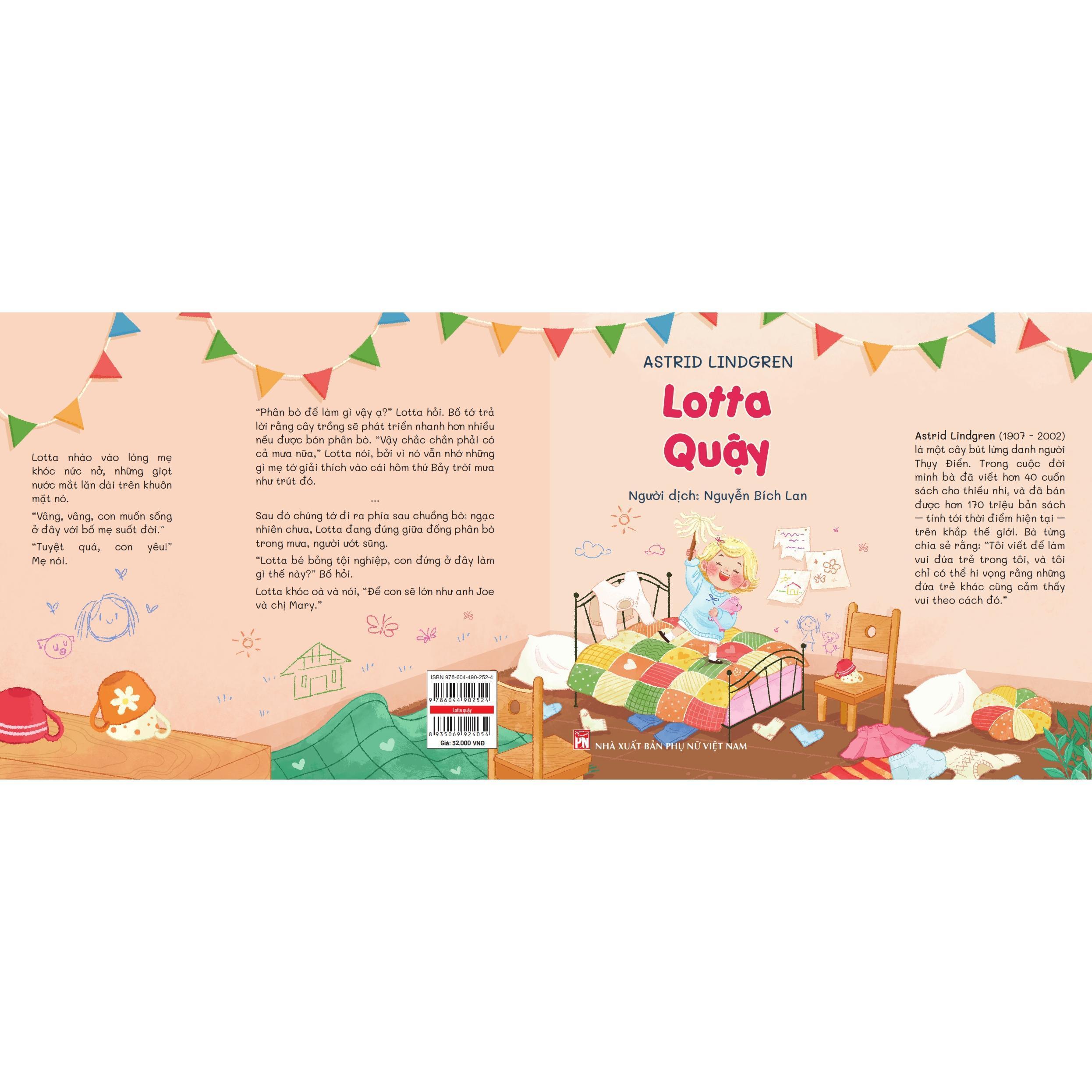 Năm nay, nhà xuất bản Phụ nữ Việt Nam tiếp tục giới thiệu cho các em những cuốn sách của Astrid Lindgren – cây bút lừng danh Thụy Điển: Lotta bướng như lừa, và Lotta quậy. Nhân vật chính còn nhỏ tuổi hơn cả “lũ trẻ làng Ồn Ào”, em Lotta mới 4 tuổi, nhưng cũng hiếu động và nghịch ngợm không kém gì. Ở bộ truyện này, tác giả đã thay đổi không gian đôi chút: ba anh em nhà Lotta đại diện cho những cô, cậu nhóc sống trên thị trấn. Dẫu vậy, các em vẫn luôn được hòa nhập với thiên nhiên, được về nhà ông bà dưới quê thỏa thích.