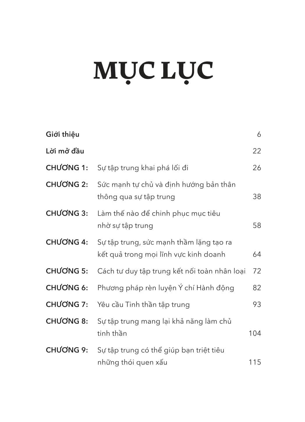 Cuốn sách bao gồm 20 chương ngắn gọn, tương ứng với 20 bài học thực hành đơn giản nhưng sâu sắc sẽ chỉ dẫn bạn cách loại bỏ sự phân tâm, xây dựng ý chí và biến sự tập trung thành một thói quen bền vững, từ đó khai thác triệt để tiềm năng và chạm tới những mục tiêu không tưởng!