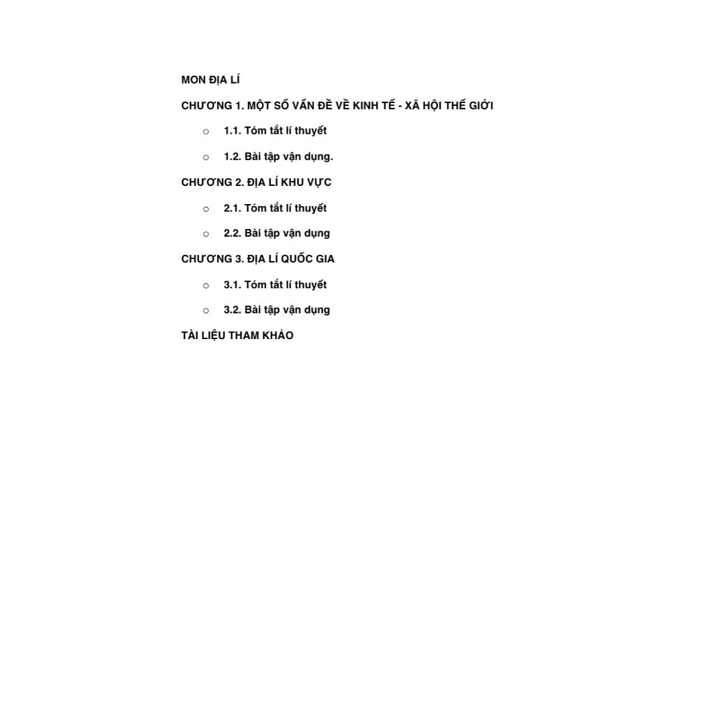 Chương 1 : Một số vấn đề kinh tế - xã hội Thế giới