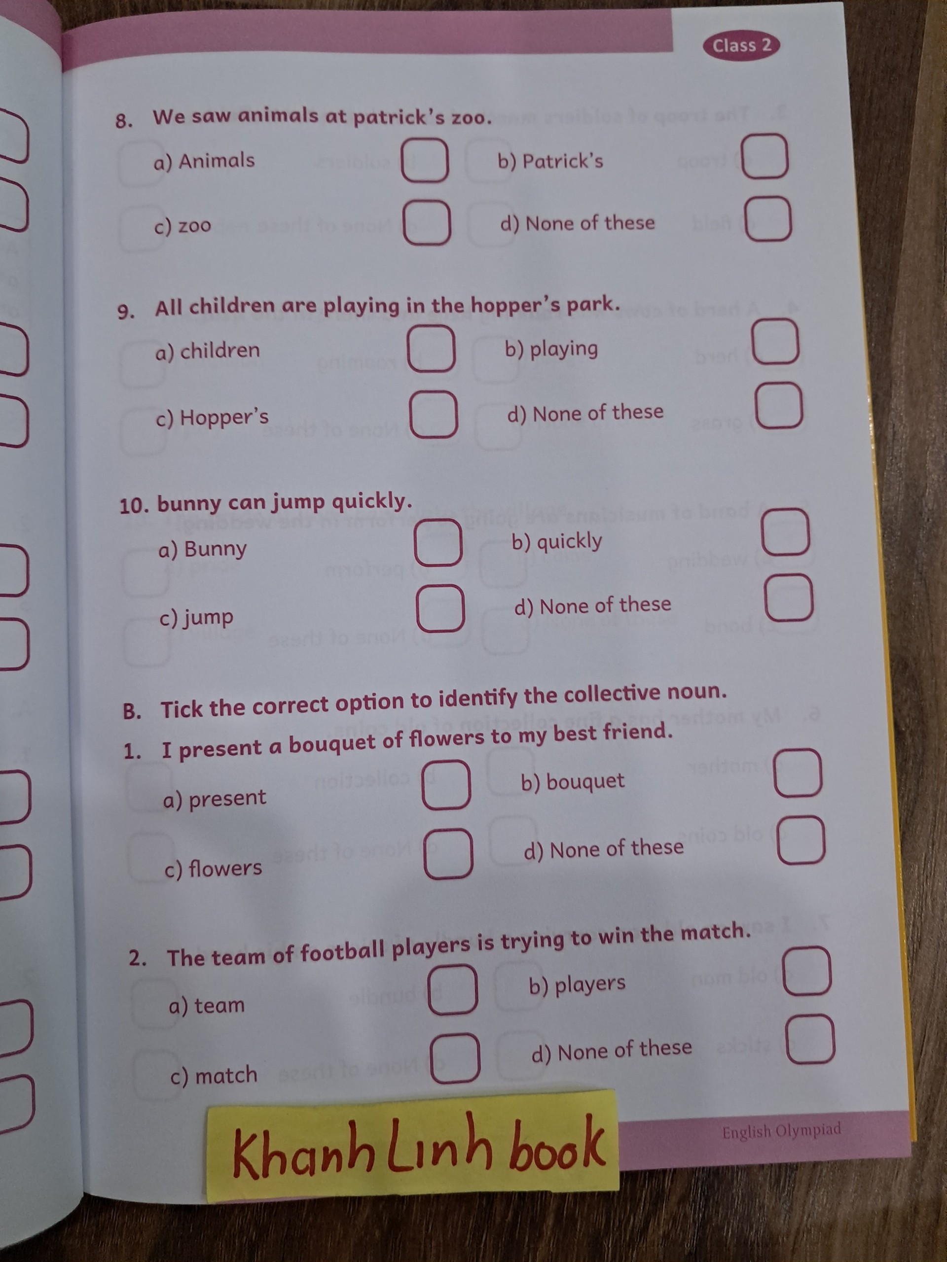 Học ngữ pháp tiếng anh thế nào cho hiệu quả. Làm sao để ghi nhớ được các hiện tượng ngữ pháp. Làm thế nào để đạt được điểm cao trong các kỳ thi Tiếng Anh . Bộ sách “LUYỆN THI OLYMPIC TIẾNG ANH -EngLish Olympiad lớp 2 “chắc chắn sẽ là bộ tài liệu hữu ích cho mỗi học sinh, giáo viên và phụ huynh cần để chuẩn bị kiến thức trước khi bước vào các kỳ thi tiếng anh ở bậc tiểu học.