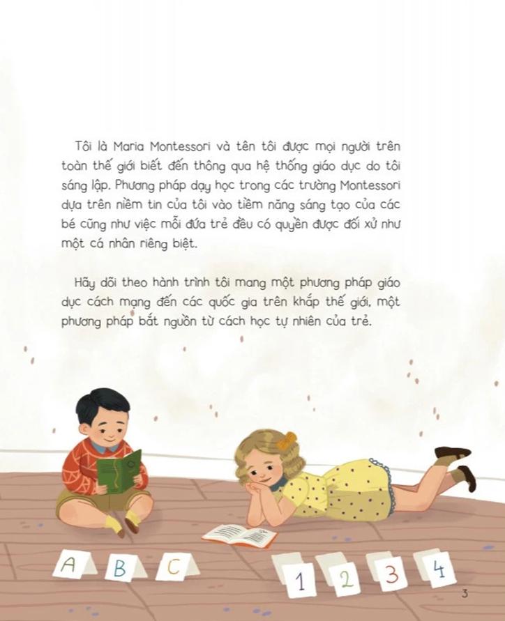 Maria Montessri Tôi là Maria Montessori và tên tôi được mọi người trên toàn thế giới biết đến thông qua hệ thống giáo dục do tôi sáng lập. Phương pháp dạy học trong các trường Montessori dựa trên niềm tin của tôi vào tiềm năng sáng tạo của các bé cũng như việc mỗi đứa trẻ đều có quyền được đối xử như một cá nhân riêng biệt. Hãy dõi theo hành trình tôi mang một phương pháp giáo dục cách mạng đến các quốc gia trên khắp thế giới, một phương pháp bắt nguồn từ cách học tự nhiên của trẻ.