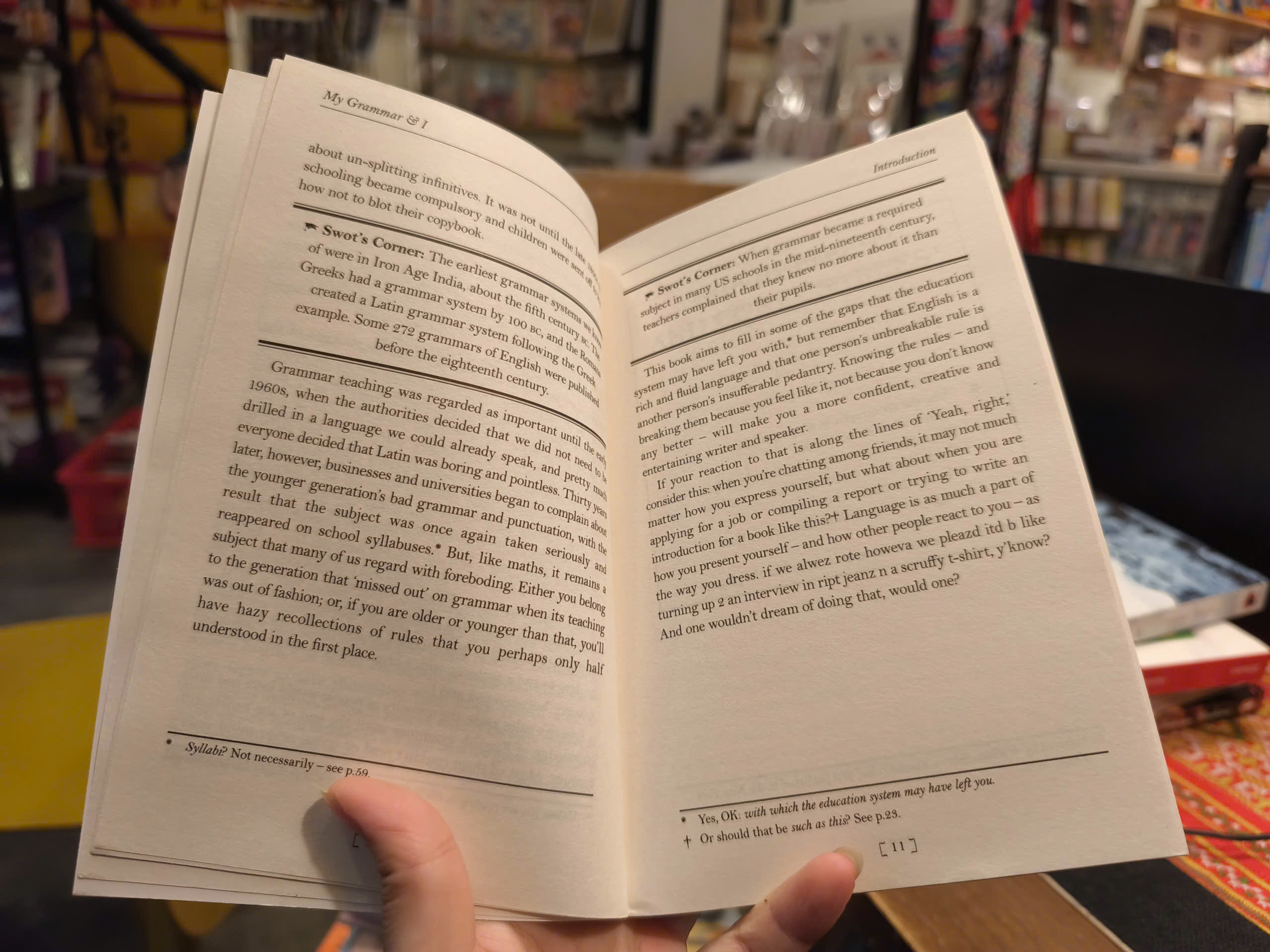 My Grammar and I cung cấp những ví dụ thú vị về ngữ pháp dở tệ, đồng thời dẫn dắt bạn đến đỉnh cao của ngữ pháp. Cuốn sách đưa bạn vào một hành trình khám phá tiếng Anh các quy tắc và điều kiện có thể khiến bạn mắc bẫy, từ các bổ ngữ lơ lửng đến các động từ chia đôi, đồng thời nêu bật những cạm bẫy phổ biến mà mọi người dùng tiếng Anh đều gặp phải hàng ngày. Cập nhật tất cả những gì bạn nên học ở trường và hơn thế nữa, My Grammar and I vừa bổ ích vừa thú vị: một cuốn sách tham khảo không thể thiếu cho bất kỳ người đam mê tiếng Anh nào.