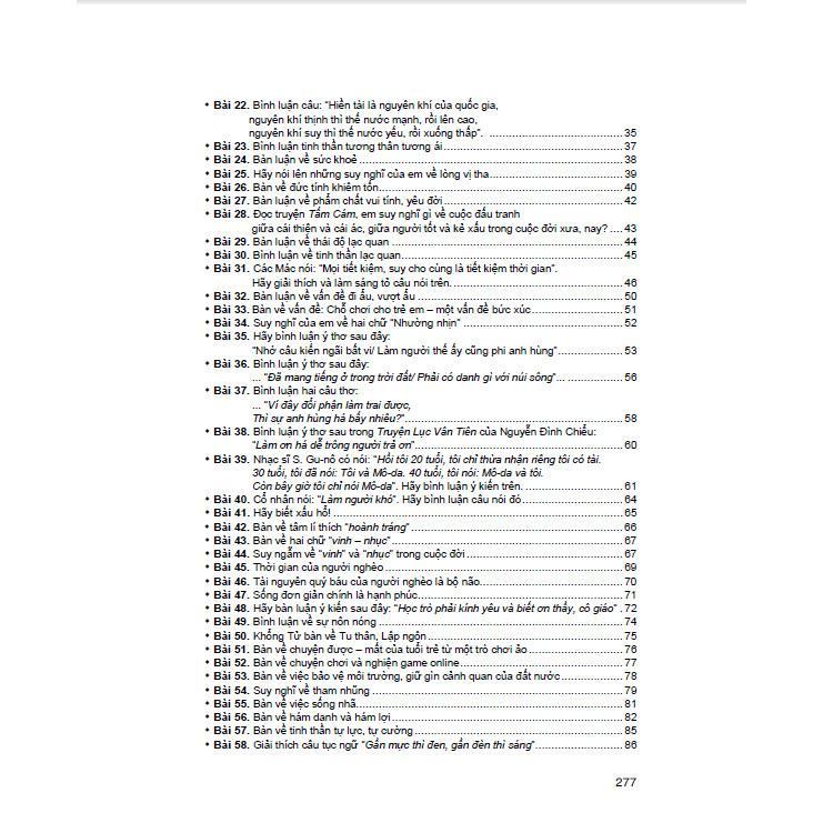 Ví dụ, bàn luận về đức tính khiêm tốn; bình luận phương châm: “Học đi đôi với hành”; suy nghĩ về nạn tham nhũng,...