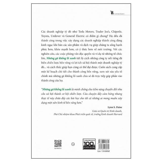 Chương 2: Đổi mới Sáng tạo Đột phá. Mỗi dòng doanh thu của Gã Khổng Lồ Xanh không được xây dựng dựa trên một phiên bản xanh hơn một chút hay có trách nhiệm xã hội hơn một chút của một sản phẩm đã có sẵn, mà dựa trên một ý tưởng đổi mới sáng tạo có sức đột phá cả một lĩnh vực. Trong chương này, bạn sẽ biết những Gã Khổng Lồ Xanh làm như thế nào để cho ra đời những ý tưởng đổi mới sáng tạo theo định hướng phát triển bền vững, từ đó tạo ra những kết quả đột phá trong kinh doanh.
