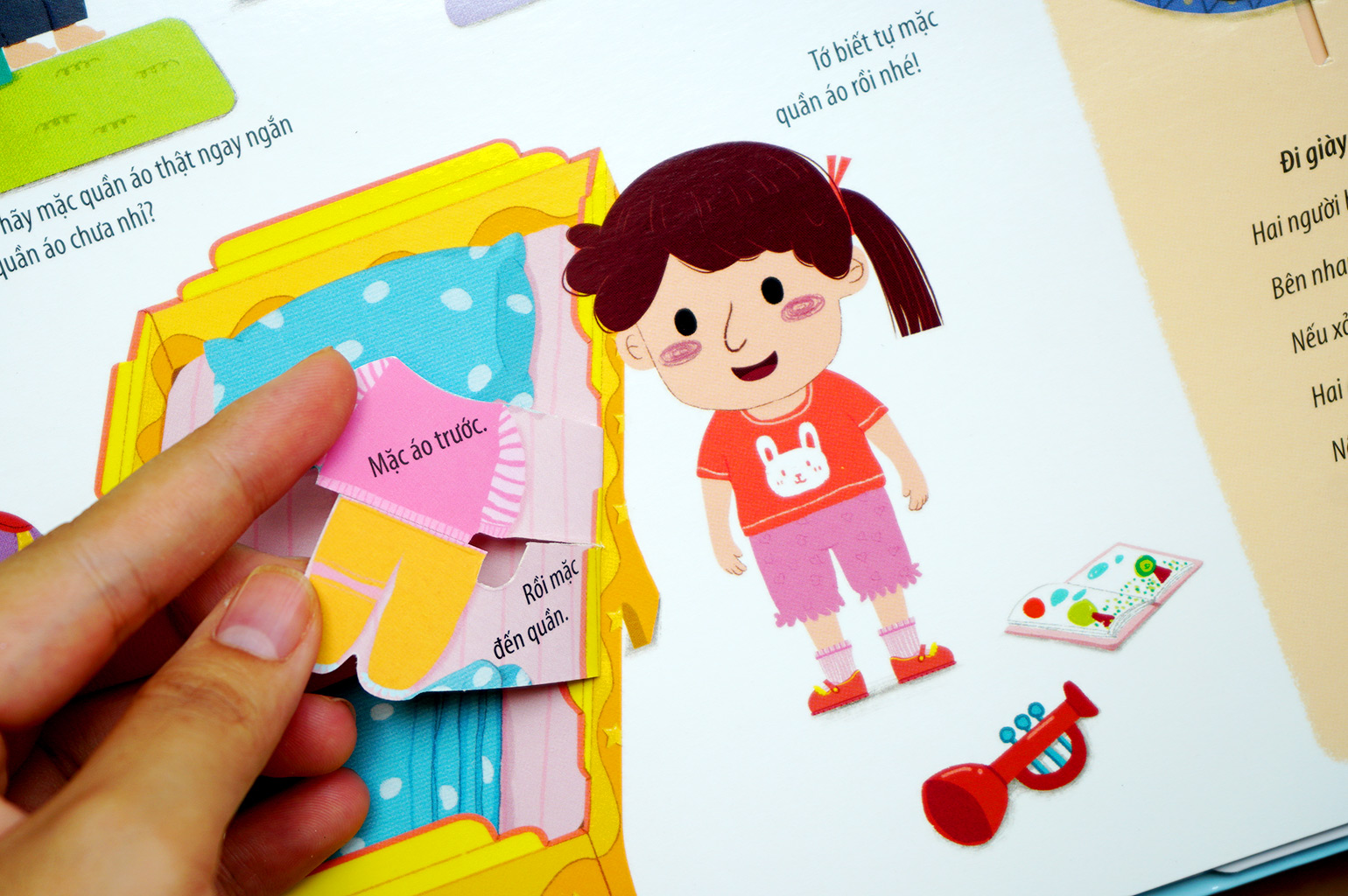 Cuốn sách còn có nhiều hình minh họa ngộ nghĩnh, thiết thực, được thiết kế đầy tinh tế, tỉ mỉ bằng các miếng LẬT - MỞ - KÉO - ĐẨY, giúp trẻ vừa chơi vừa học kiến thức.