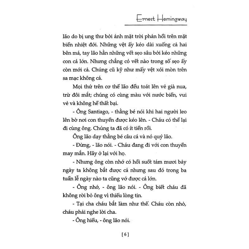 Ông Già Và Biển Cả là một trong những tác phẩm nổi tiếng nhất của Hemingway, sử dụng nguyên lý “tảng băng trôi” khi kể về một cuộc săn đuổi con cá kiếm khổng lồ của ông lão đánh cá Santiago, người đã cố gắng chiến đấu trong ba ngày đêm vật lộn trên biển vùng Giếng Lớn khi ông câu được nó. Sang đến ngày thứ ba, ông dùng lao đâm chết được con cá, buộc nó vào mạn thuyền và lôi về nhưng đàn cá mập đánh hơi thấy đã lăn xả tới, ông lại đem hết sức tàn chống chọi với lũ cá mập, phóng lao, thậm chí cả mái chèo để đánh. Ông giết được nhiều con, đuổi được chúng đi, nhưng cuối cùng khi nhìn đến con cá kiếm của mình thì nó đã bị rỉa hết thịt chỉ còn trơ lại một bộ xương khổng lồ. Tác phẩm là bản anh hùng ca ca ngợi sức lao động và khát vọng của con người.