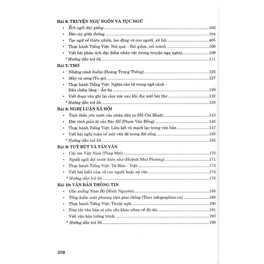 - Phần 2: Hướng dẫn trả lời: Phần này, bộ sách đưa ra các gợi ý, hướng dẫn, tư liệu tham khảo, các thao tác để học sinh tự trả lời các câu hỏi và bài tập ở phần 1 nhằm phát triển năng lực ngôn ngữ và tư duy ở người học. Nhiều câu hỏi học sinh có thể tự trả lời theo hiểu biết và quan điểm cá nhân, khuyến khích sự độc lập suy nghĩ và sáng tạo.