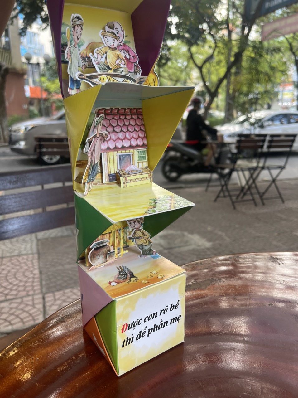 Ta đã gặp nhiều sách dựng hình mang nội dung nước ngoài, nhưng ít thấy sản phẩm thủ công mang nội dung hồn hậu đậm chất Việt. Hai hộp sách dưới đây vừa là "sách" vừa là món đồ chơi cho con trẻ - giản dị, sáng tạo và thuần Việt.