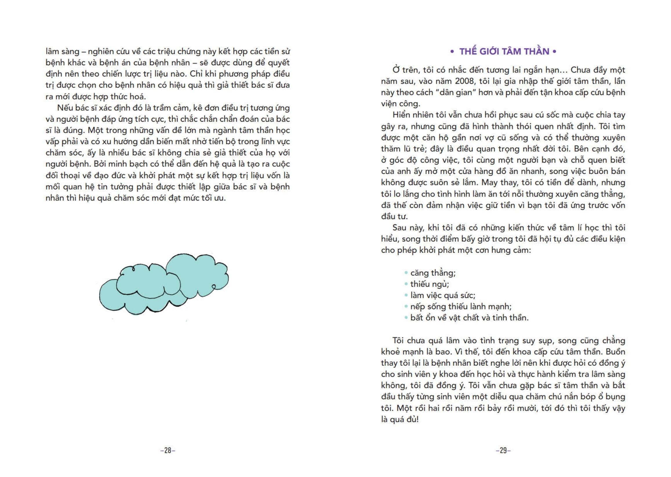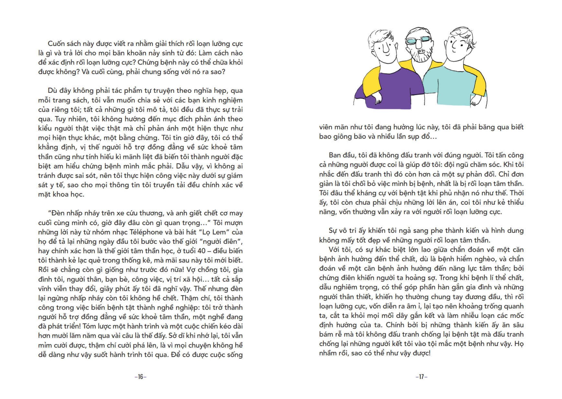 Rối Loạn Lưỡng Cực - Hành Trình Dài Chung Sống - Trò Chuyện Về Sức Khoẻ Tâm Thần - Từ Chẩn Đoán Đến Cuộc Sống Hằng Ngày Rối Loạn Lưỡng Cực - Hành Trình Dài Chung Sống là cuốn sách sống động với nhiều hình ảnh minh hoạ giúp chúng ta hiểu rõ hơn về chứng rối loạn lưỡng cực và phần nào giải đáp những băn khoăn nảy sinh: Làm cách nào để xác định rối loạn lưỡng cực? Chứng bệnh này có thể chữa khỏi được không? Cuối cùng, phải chung sống với nó ra sao? Tuy còn xa lạ với nhiều người, song rối loạn lưỡng cực lại ảnh hưởng tới từ 1 - 2,5% dân số. Dẫu vậy, khi mắc bệnh, bệnh nhân vẫn phải trải qua cuộc đấu tranh thực sự: không được thừa nhận, bị kì thị, hành trình chẩn đoán gian nan, khó khăn trong kiểm soát triệu chứng… Người rối loạn lưỡng cực thường cảm thấy cô độc và không được ai thấu hiểu. Bằng kinh nghiệm sống và hành trình y tế từng trải qua, cùng sự đồng hành của bác sĩ Céline Renouard, tác giả Fabrice Saulière đã kể lại hành trình cuộc đời của m.ình, hé lộ với chúng ta thế nào là cuộc sống thực sự của một người rối loạn lưỡng cực, đồng thời đưa ra những lời khuyên giá trị để có thể “chung sống” với rối loạn lưỡng cực tốt hơn trong cuộc sống hằng ngày.