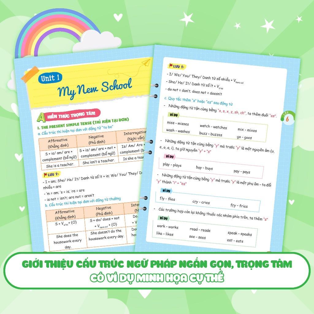 Cuốn sách giới thiệu các cấu trúc ngữ pháp tiếng Anh một cách ngắn gọn, trọng tâm, có kèm ví dụ minh họa cụ thể giúp các em dễ dàng ghi nhớ và vận dụng.