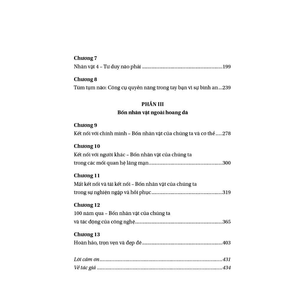 Chúng ta càng quen thuộc với từng nhân vật của bản thân và của người khác, chúng ta càng có sức mạnh kiểm soát suy nghĩ, cảm xúc, các mối quan hệ và cuộc sống của chúng ta. Trên thực tế, chúng ta sẽ nhận ra rằng mình có sức mạnh lựa chọn con người và cách thức chúng ta muốn thể hiện trong từng khoảnh khắc. Và khi bốn nhân vật của chúng ta kết hợp với nhau và cân bằng thành một bộ não trọn vẹn, chúng ta sẽ có cơ hội mở ra một lộ trình mới để vươn tới sự bình an của nội tại.