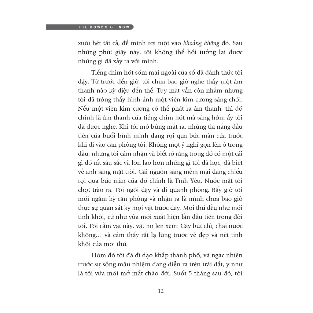 Sức Mạnh Của Hiện Tại được viết một cách súc tích và thâm thuý nên nhiều khi ta chỉ cần đọc một câu hay một đoạn ngắn thì đã cảm thấy vừa đủ, vì quả thực chúng ta cần có không gian để chiêm nghiệm những điều sâu sắc mà tác giả đã đưa ra. Nhờ sử dụng ngôn ngữ đương đại nên "Sức Mạnh Của Hiện Tại" dễ dàng đi vào lòng độc giả. Cuốn sách này có năng lực rất lớn để giúp bạn chuyển hoá khổ đau và đưa bạn đến giải thoát.