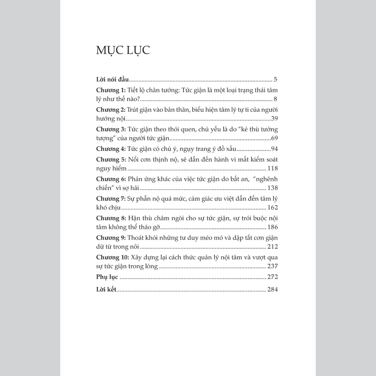 Muốn kiểm soát được cơn giận của bản thân, chúng ta cần phải có nghị lực và tự nhận thức về hậu quả của nó mang lại. Một khi bạn hiểu được nguyên nhân gây ra sự tức giận của mình, bạn sẽ có thể kiểm soát tốt nhất và biến nó thành động lực tích cực để có một cuộc sống tốt đẹp hơn. Hy vọng cuốn sách này sẽ giúp bạn có thể kìm nén được sự tức giận của mình một cách hiệu quả, cải thiện mối quan hệ với những người xung quanh và thực sự sống một cuộc sống hạnh phúc và bình yên