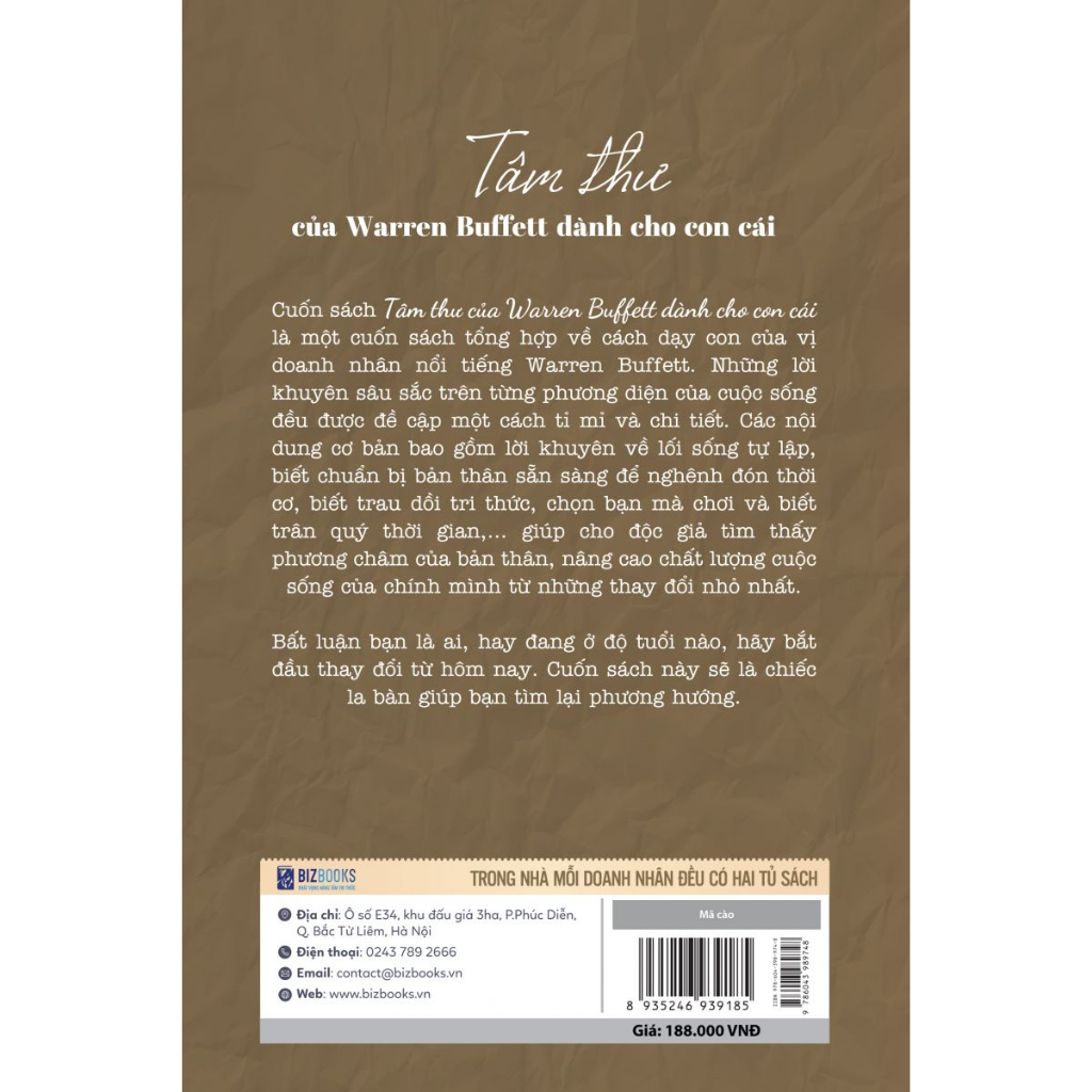 Những tâm thư của Warren Buffett viết trong cuốn sách này, thể hiện sự tâm huyết và tình cảm cha con mà không phải ai cũng có thể trải nghiệm được, cuốn sách này bao gồm những bức thư ngắn nhưng chứa đầy những bài học về đầu tư và cách sống đầy tính nhân đạo.