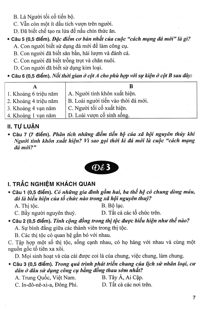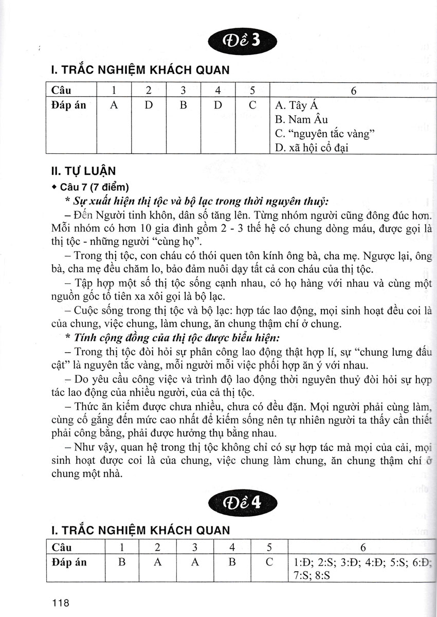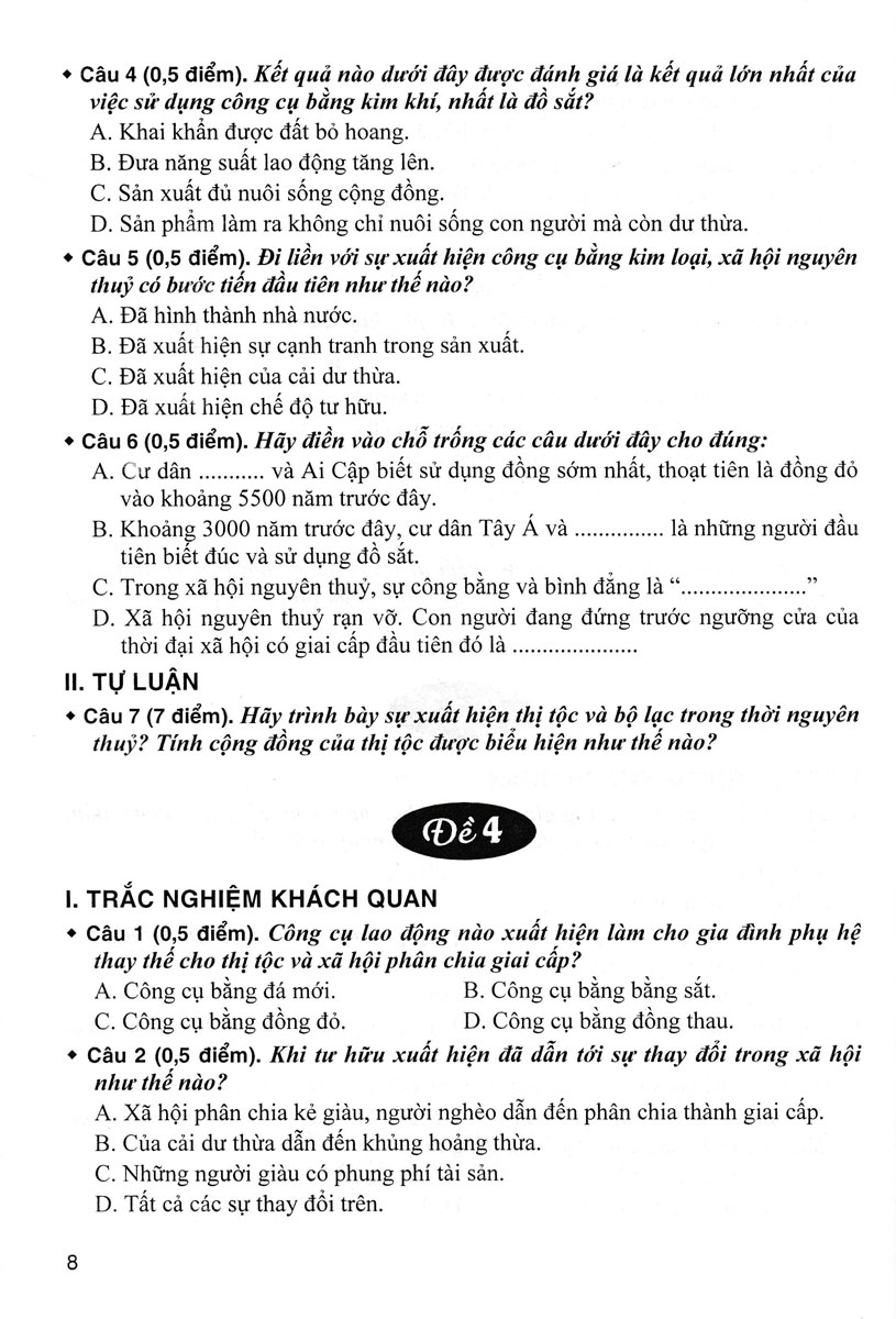 Đề trắc nghiệm và tự luận theo từng bài, từng chương (kể cả bài ôn tập các chương, bài tổng kết, nhằm giúp học sinh nắm chắc kiến thức để vận dụng, phân tích, tổng hợp và đánh giá các sự kiện, nhân vật, lịch sử).