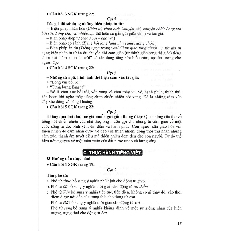 Ngoài việc hướng dẫn gợi ý trả lời các câu hỏi trong sách giáo khoa, cuốn sách còn giúp thầy cô và các em ôn tập, củng cố, mở rộng thêm vốn kiến thức môn Ngữ văn cũng như tự tin viết và nói được những kiểu văn bản: tự sự, biểu cảm, nghị luận, thuyết minh.