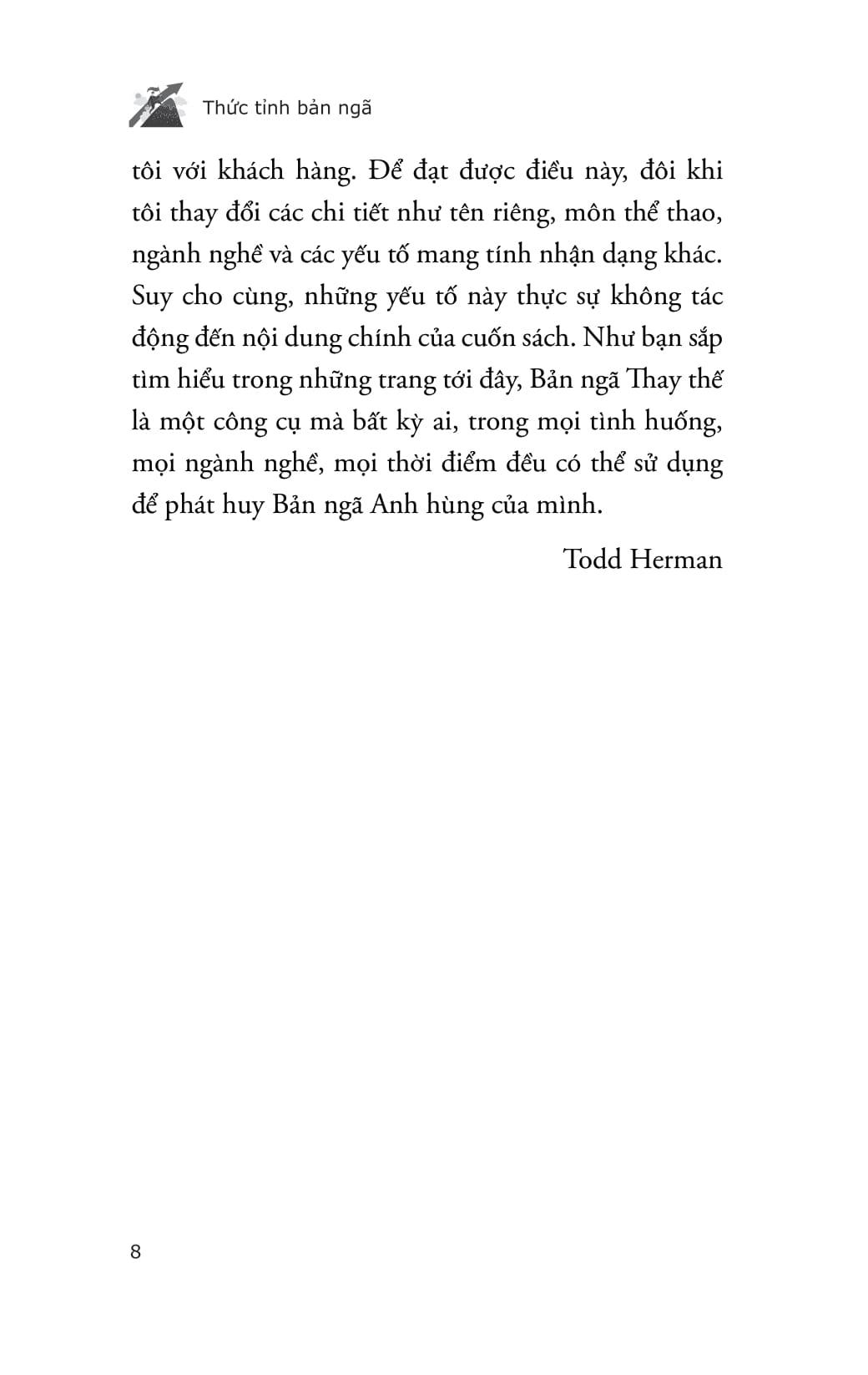 Trongcuốn sách “Thức tỉnh bản ngã”, tác giả Todd Herman - nhà huấn luyện hiệu suất đã đồng hành cùng hàng ngàn vận động viên, CEO và nghệ sĩ - tiết lộ một chiến lược tâm lý độc đáo: tạo ra alter ego (bản ngã thay thế). Đây là phương pháp tâm lý học đã được chứng minh hiệu quả, giúp chúng ta vượt qua sự nghi ngờ bản thân, những suy nghĩ tiêu cực và bất an đang kìm hãm năng lực, qua đó giúp mỗi cá nhân trở thành phiên bản tốt nhất của chính m.ình.