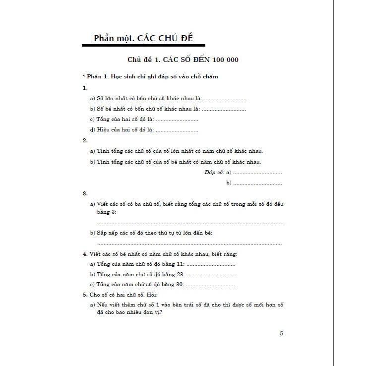 Cuốn sách là một tài liệu tham khảo mở rộng theo chủ đề:các số có nhiều chữ số được viết theo hàng va lớp , các phép tính với số có nhiều chữ số , khái quát hóa, mở rộng các tính chất của phép tính, bài toán về tính số trung bình cộng, tìm hai số khi biết tổng và hiệu, bài toán về gấp một số lần và giảm một số lần, bài toán về một phần mấy của một số,...