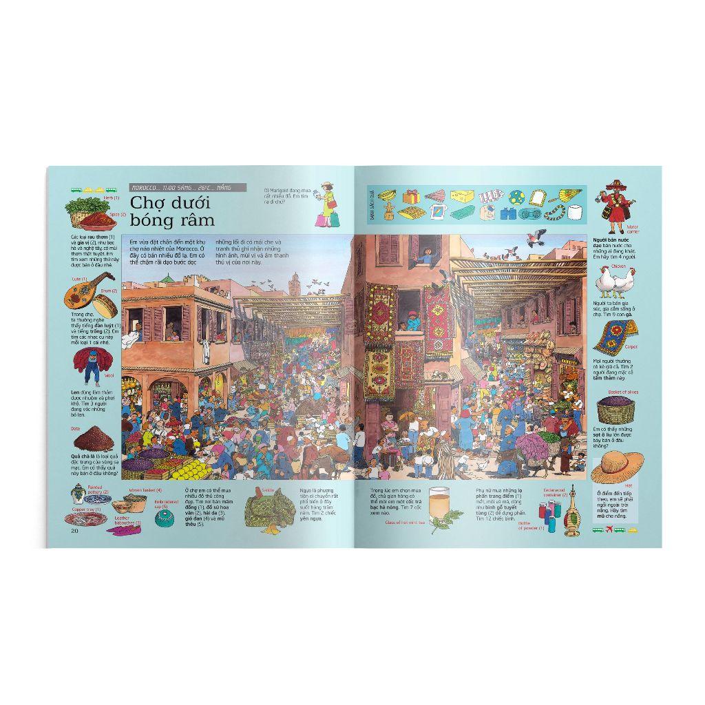 Mã hàng: 8936203363654 Nhà cung cấp: Đông A Nhà xuất bản: Dân trí Tác giả: Usborne Năm xuất bản: 2023 Số trang: 48 Trọng lượng: 100g Kích thước: 23.2 x 30.9 cm Thử tài tìm kiếm – Thế giới Dì Marigold tặng em một món quà đặc biệt: tấm vé du lịch vòng quanh tế giới. Trong chuyến đi, sẽ có những thử thách yêu cầu em tìm kiếm nhiều thứ và phát hiện ra điểm đến tiếp theo. Không chỉ mang đến nhiều giờ giải trí thú vị, Thử tài tìm kiếm – Thế giới còn chứa đựng vô vàn thông tin hấp dẫn về các dân tôc và xứ sở trên thế giới.