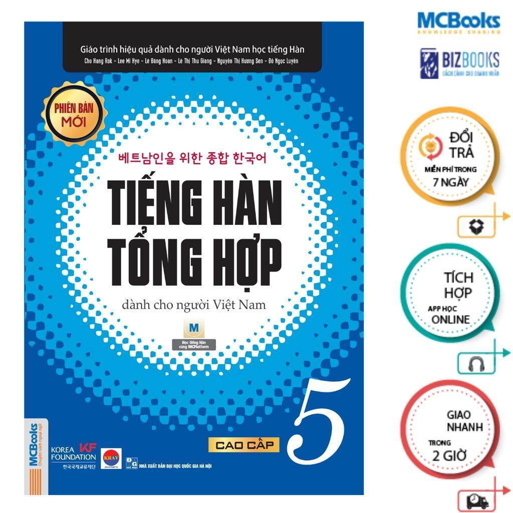 - Giáo trình tiếng Hàn tổng hợp cao cấp 5 - sách bài học Công ty phát hành MCBOOKS Tác giả Nhiều tác giả Nhà xuất bản Đại Học Quốc Gia Hà Nội Năm xuất bản 2020 Số trang 300 Giới thiệu sách Dưới sự đầu tư biên soạn với cấu trúc bài giảng hợp lý, bộ giáo trình tiếng Hàn tổng hợp dành cho người Việt Nam đang ngày càng phổ biến trong cộng đồng người học tiếng Hàn. Giáo trình tiếng Hàn tổng hợp cao cấp 5 là cuốn sách được biên soạn dành cho người Việt học tiếng Hàn đã hoàn thành trình độ Sơ cấp và trung cấp. Cấu trúc bài vẫn như các cuốn trước nhưng với ngữ pháp chuyên sâu và cao cấp hơn. Tương đương trình độ TOPIK 5 Tặng kèm App học online tiện ích. Bởi vậy, cuốn sách là cẩm nang không thể thiếu đối với người học tiếng Hàn hiện nay