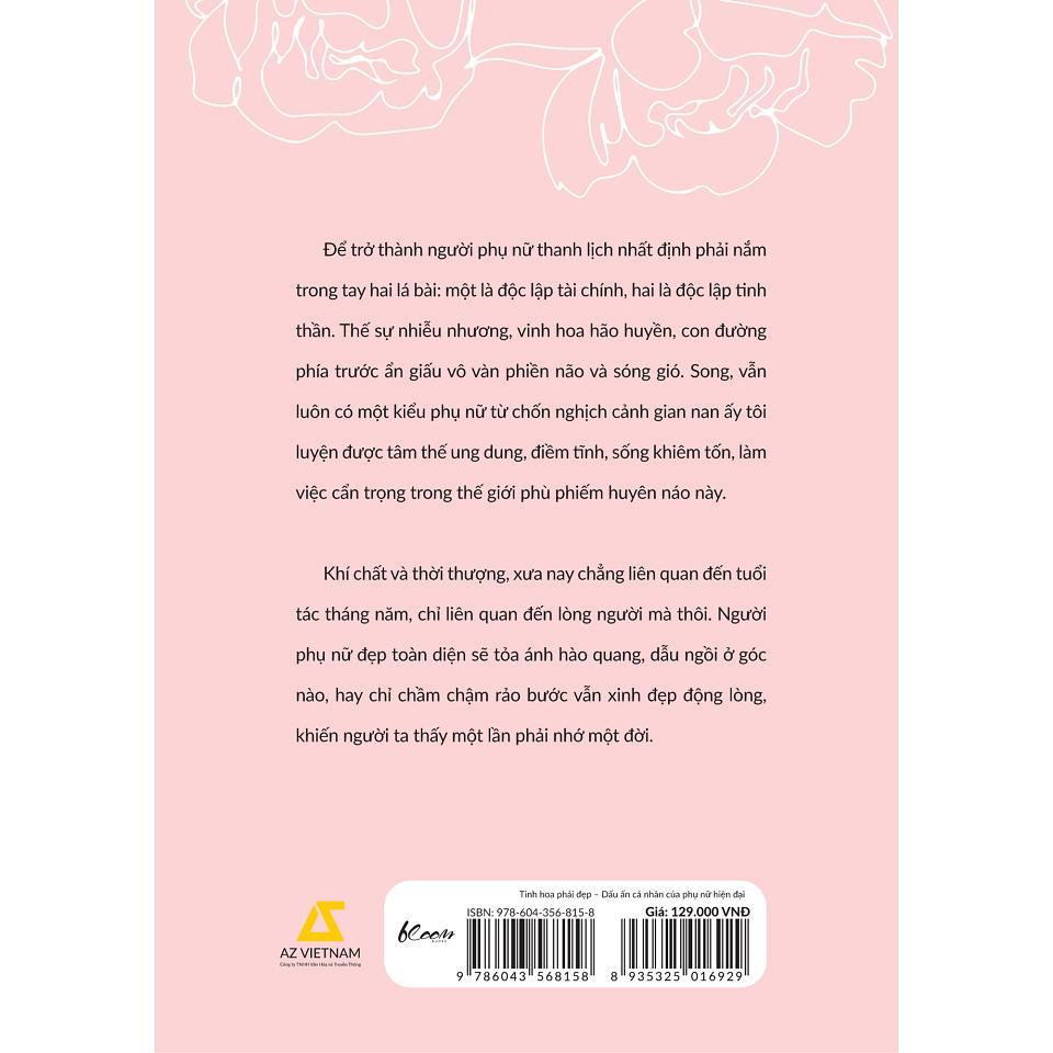 Hãy để cuốn sách Tinh hoa phái đẹp giúp bạn sống một cuôc đời thông minh thanh lịch và nắm chắc trong tay hai lá bài vận mệnh: độc lập tài chính và độc lập tinh thần. Qua 8 chương sách, hơn 40 bài viết xoay quanh các khía cạnh cuộc sống từ tu dưỡng vẻ đẹp từ tâm hồn đến ngoại hình, xây dựng tính kỷ luật, quản lý EQ và hình thể, phong cách bề ngoài, ăn mặc, trang điểm,... cuốn sách sẽ giúp các cô gái từng bước "phá kén", trở thành phiên bản hoàn hảo nhất của chính mình.