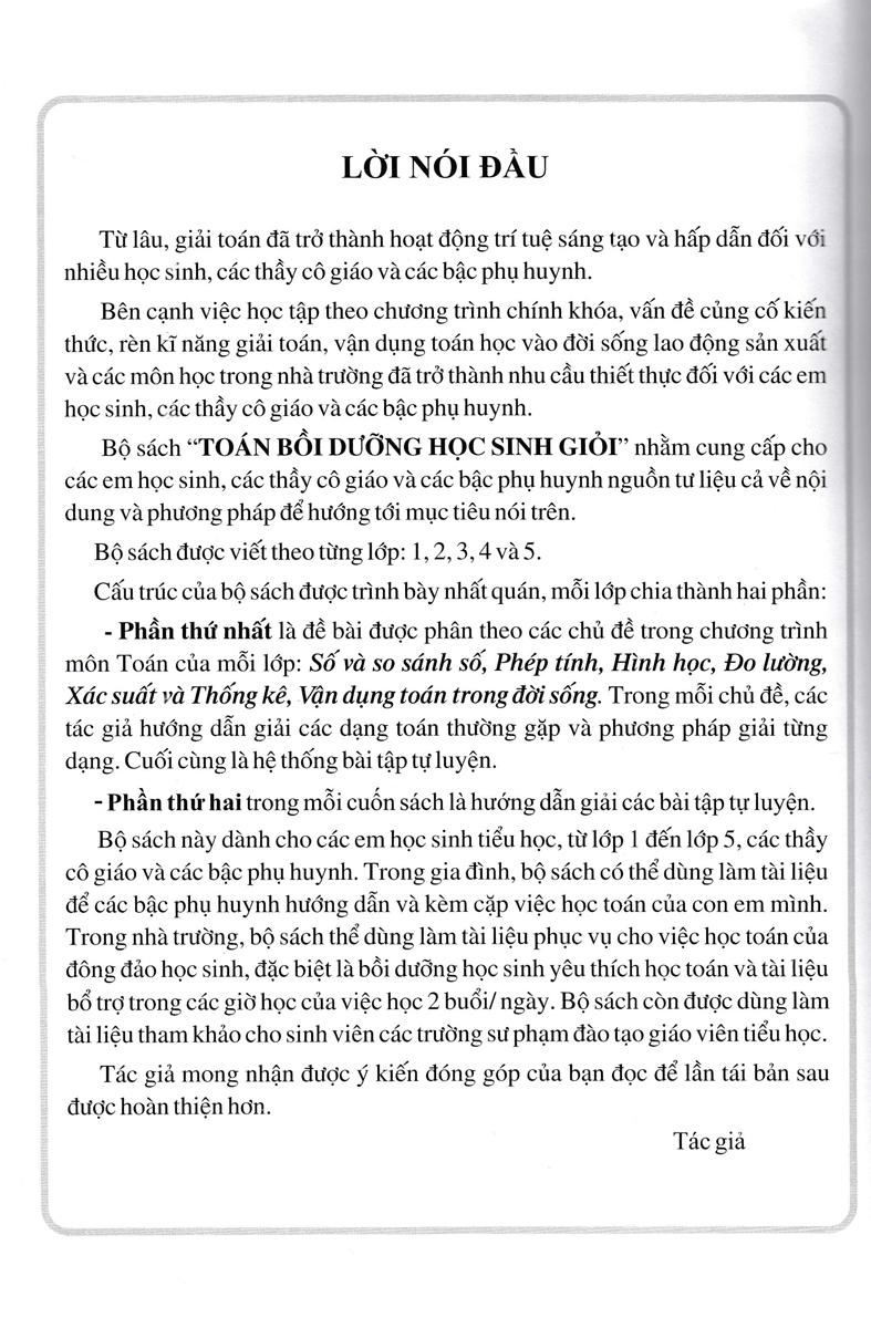 Bên cạnh việc học tập theo chương trình chính khoá, vấn đề củng cố kiến thức, rèn kĩ năng giải toán, vận dụng toán học vào đời sống lao động sản xuất và các môn học trong nhà trường đã trở thành nhu cầu thiết thực đối với các em học sinh, các thầy cô giáo và các bậc phụ huynh. Bộ sách " TOÁN BỒI DƯỠNG HỌC SINH GIỎI nhằm cung cấp cho các em học sinh, các thầy cô giáo và các bậc phụ huynh nguồn tư liệu cả về nội dung và phương pháp để hướng tới mục tiêu nói trên.