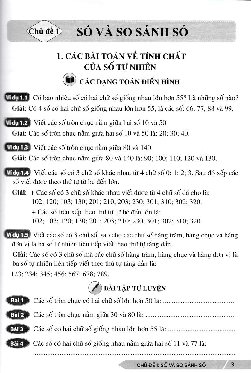 -Phần thứ nhất là để bài được phân theo các chủ đề trong chương trình môn Toán của mỗi lớp. Số và so sánh số, Phép tính, Hình học, Đo lường, Yếu tố thống kê và xác suất, Vận dụng toán học. Trong mỗi chủ đề, các tác giả hướng dẫn giải các dạng toán thường gặp và phương pháp giải từng dạng.