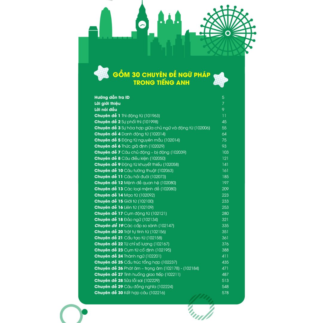 - Đầy đủ nhất với 30 chuyên đề ngữ pháp Tiếng anh thông dụng nhất.