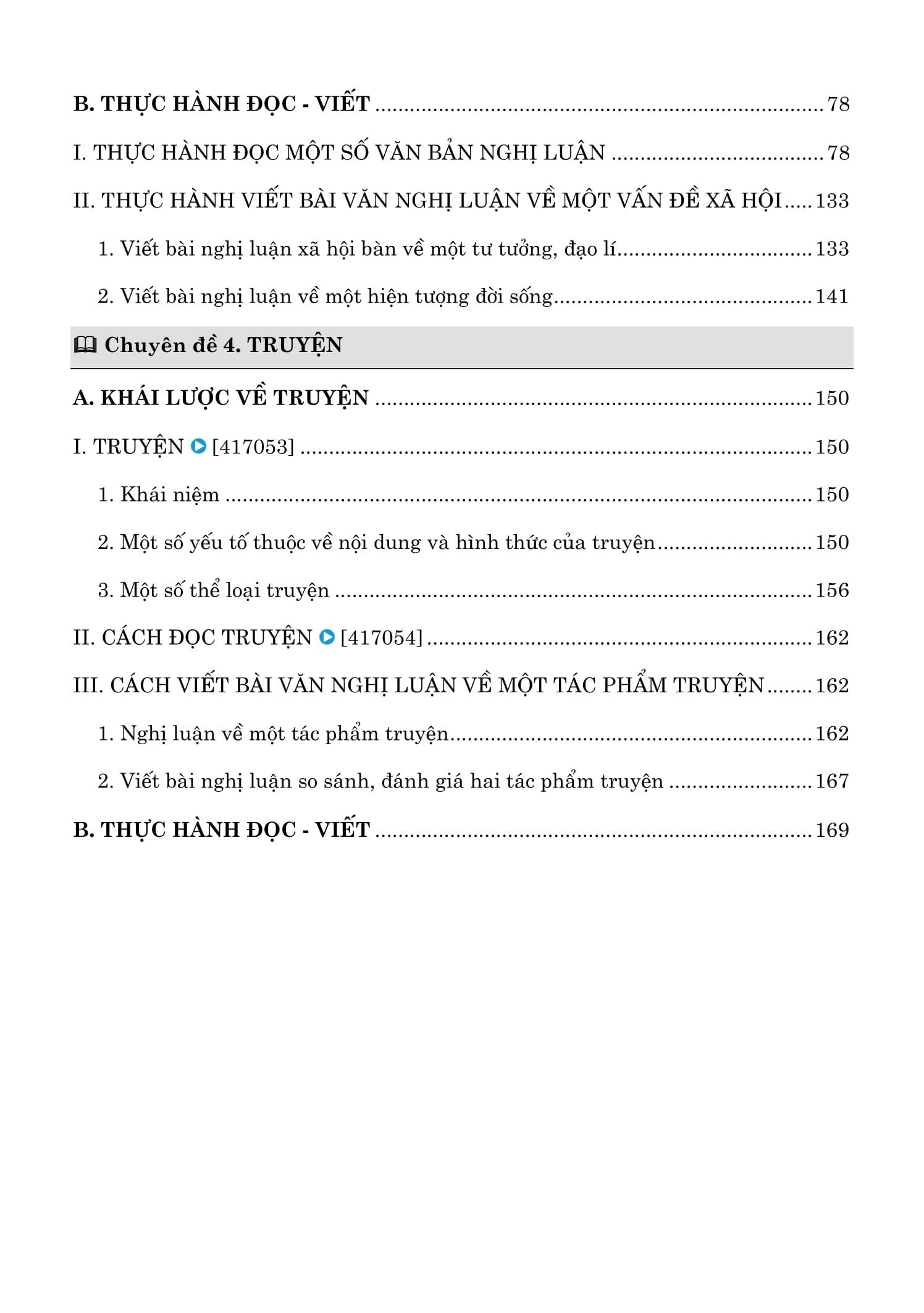 Trong các chuyên đề từ 04-08 ngữ liệu được sắp xếp theo trình tự nhóm loại ( chẳng hạn trong chuyên đề 04. Truyện, ngữ liệu gồm các tác phẩm truyện có yếu tố kì ảo - truyện ngắn hiện đại - trích đoạn tiểu thuyết ) và thời gian ( xa - gần, xưa - nay ). Gắn liền mỗi chuyên đề là bài giảng video hướng dẫn chi tiết để các em học tập.