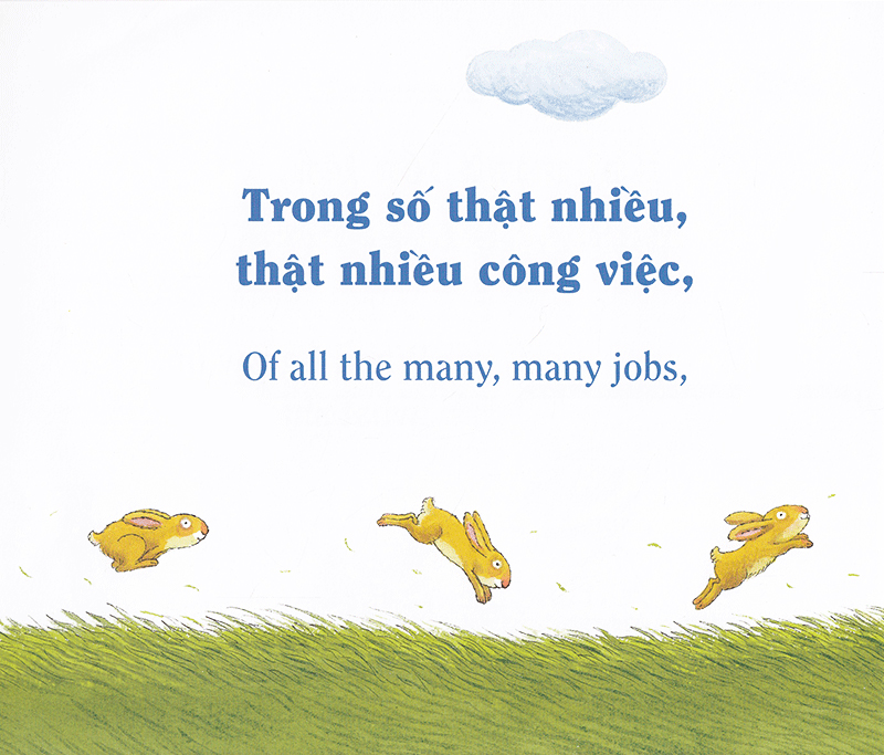 Với cuốn sách song ngữ xinh đẹp này, các bé sẽ được chìm đắm trong thế giới của riêng mình, nơi trí tưởng tượng bay xa và các em có thể làm bất cứ việc gì mà mình thích. Chưa hết, ba mẹ và các bé sẽ khám phá ra tên gọi của rất nhiều “công việc” trong tiếng Anh, và sau cùng bé sẽ chọn công việc nào nhỉ? Câu trả lời sẽ có trong “Mình có thể làm bất cứ việc gì! – I can be anything!” – Cuốn sách tuyệt vời mô tả thế giới trong đôi mắt trẻ thơ