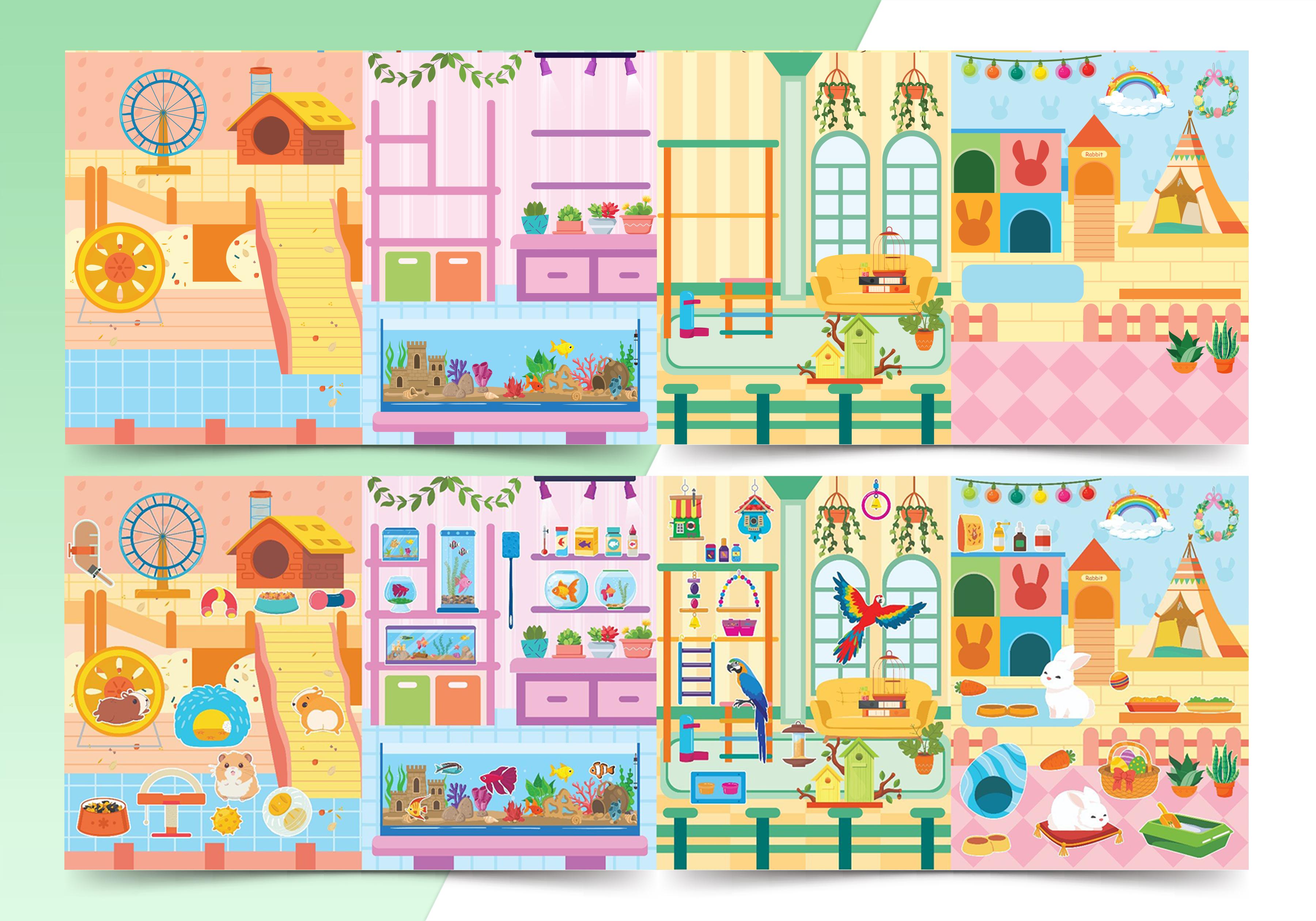 Tạo cơ hội cho bé phát triển ngôn ngữ và mô tả qua việc giải thích về các loài thú cưng và đồ dùng trong tiệm