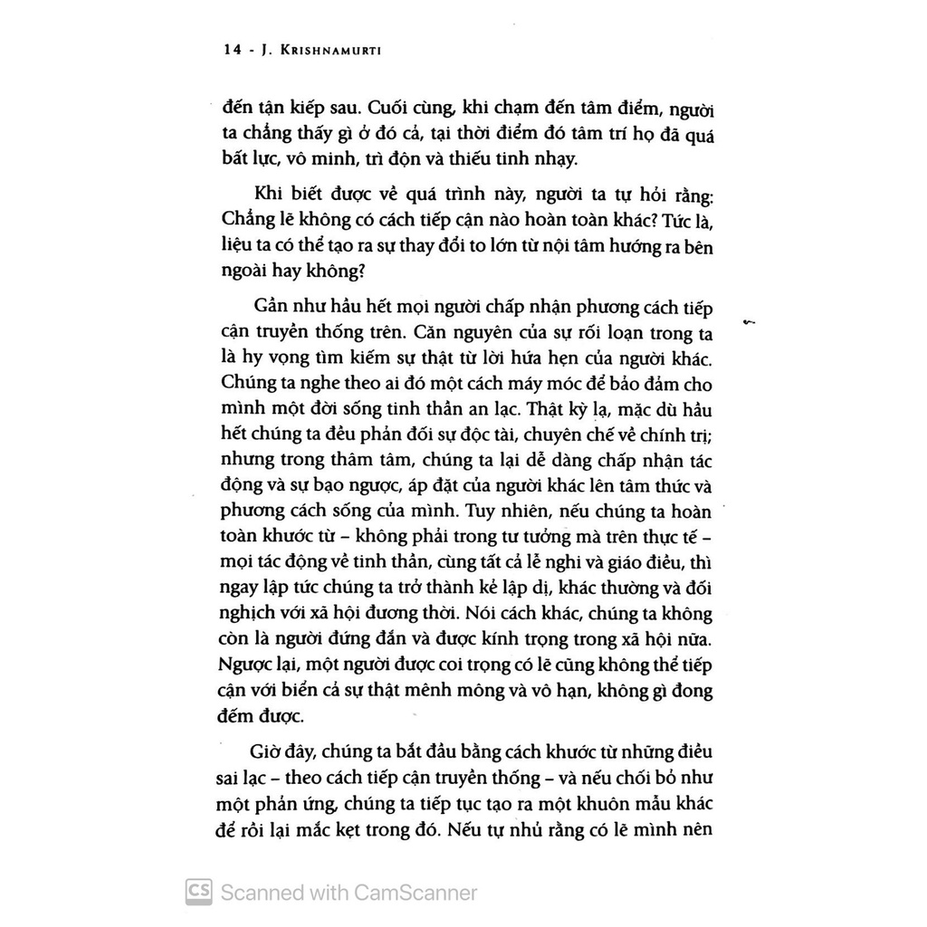 Nếu đọc cuốn sách này lần đầu, có lẽ bạn sẽ thắc mắc liệu một tài liệu bắt nguồn từ những năm 1960 có thể liên hệ chặt chẽ đến mức nào với thế giới hiện thời. Đã có biết bao trào lưu nổi dậy theo từng thời kỳ rồi bị dập tắt, hoặc do chính những người khởi lên xu hướng đó từ bỏ. Hiện tượng Krishnamurti có vì vậy mà trở nên lỗi thời? Krishnamurti đã phát biểu nhiều điều ứng nghiệm suốt chiều dài lịch sử loài người chứ không riêng gì thời đại này; chúng ta có đủ cơ sở để tin vào giá trị bền vững trong tư tưởng của ông. Thậm chí, có thể nói rằng quan điểm của ông ở thời đại ngày nay – những năm đầu thế kỷ 21 – còn trở nên xác đáng hơn bao giờ hết.
