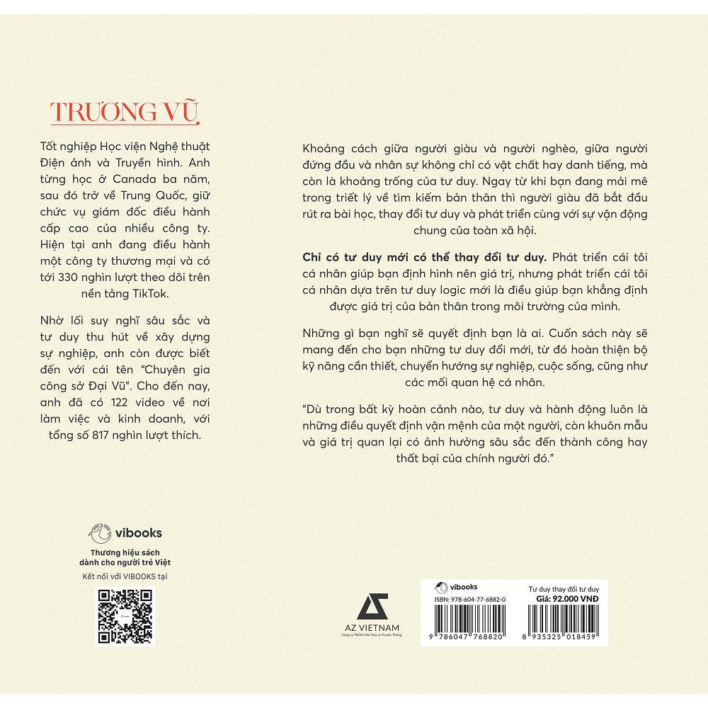 Cuốn sách TƯ DUY THAY ĐỔI TƯ DUY của tác giả Trương Vũ sẽ giúp bạn bỏ qua những tư duy luôn gò bó, cố chấp của mình, thay vào đó hình thành nên những tư duy của một người thành công. Dám làm - Dám thử thách - Luôn tích cực - Luôn đón nhận chính là những điều tạo nên một hệ tư duy của những người thành công. Thay vì chờ đợi, người thành công sẽ sở hữu tư duy chủ động hành động, chủ động tạo ra kết quả - điều hết sức cần thiết để gặt hái thành quả.