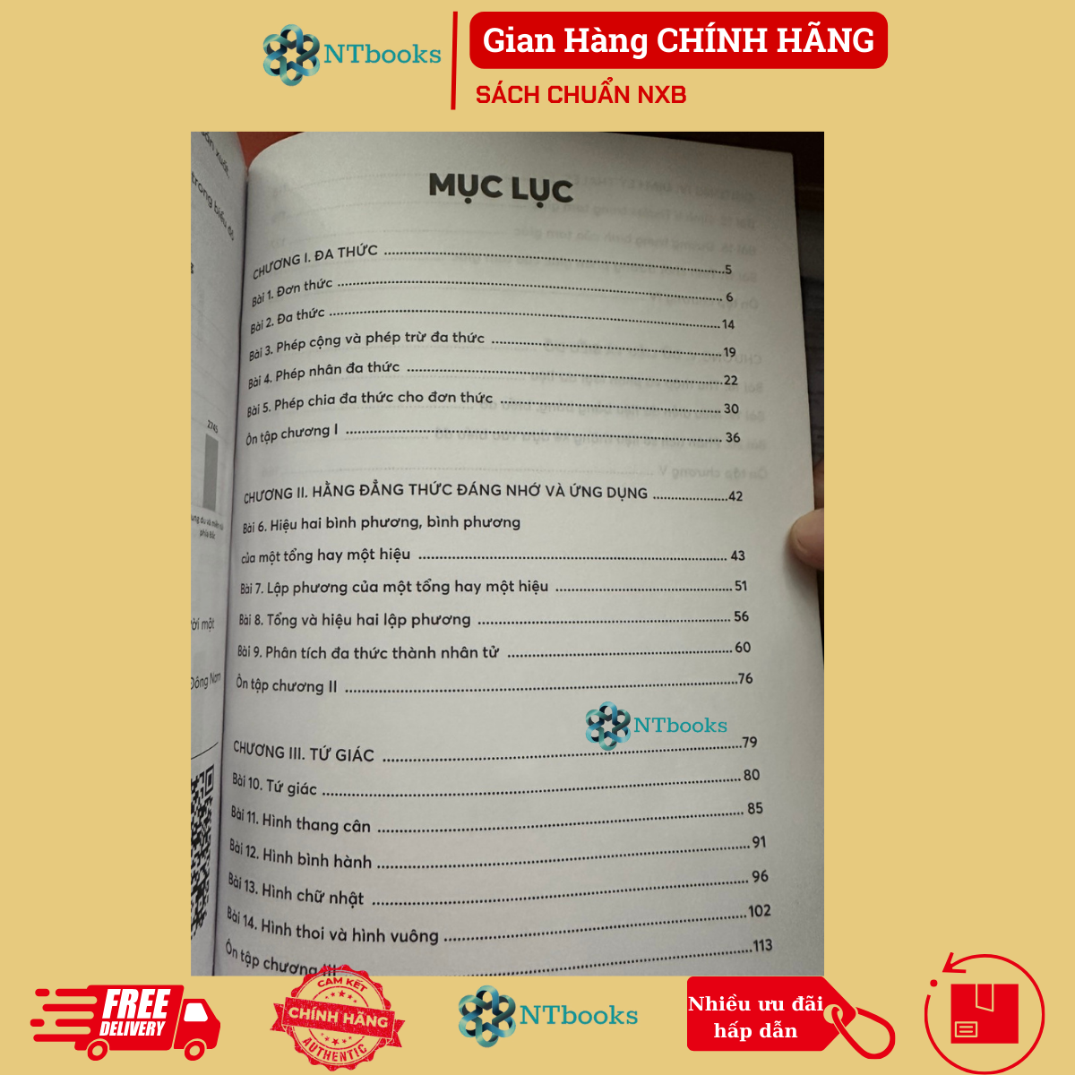 NỘI DUNG SÁCH: Chương 1: Đa thức Chương 2: Hằng đẳng thức đáng nhớ và ứng dụng Chương 3: Tứ giác Chương 4: Định lý Thales Chương 5: Dữ liệu và biểu đồ Cảm ơn bạn đã xem sản phẩm của NTbooks !