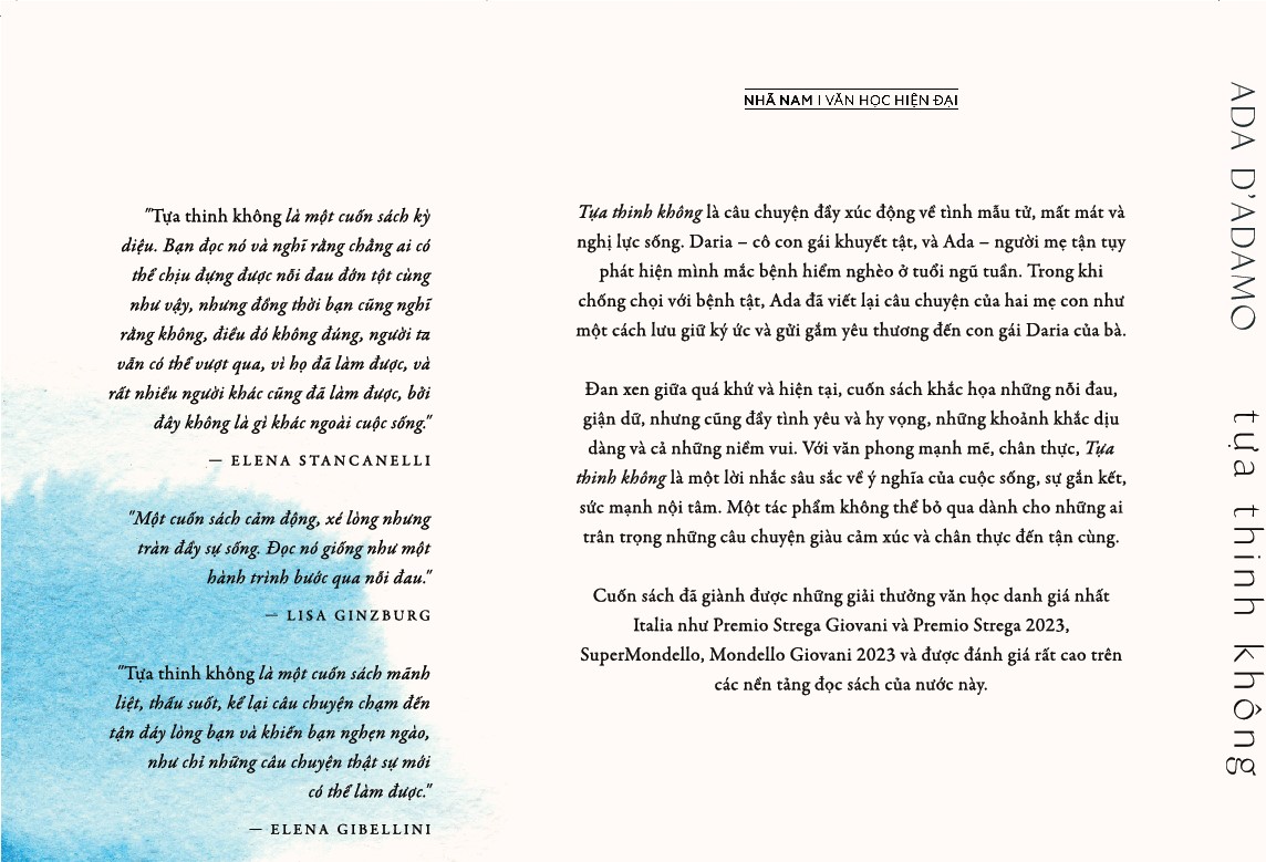 Đan xen giữa quá khứ và hiện tại, cuốn sách khắc họa những nỗi đau, giận dữ, nhưng cũng đầy tình yêu và hy vọng. những khoảng khắc dịu dàng và cả những niềm vui. Với văn phong mạnh mẽ, chân thực, Tựa thinh không là một lời nhắc sâu sắc về ý nghĩa của cuộc sống, sự gắn kết, sức mạnh nội tâm. Một tác phẩm không thể bỏ qua dành cho những ai trân trọng những câu chuyện giàu cảm xúc và chân thực đến tận cùng.